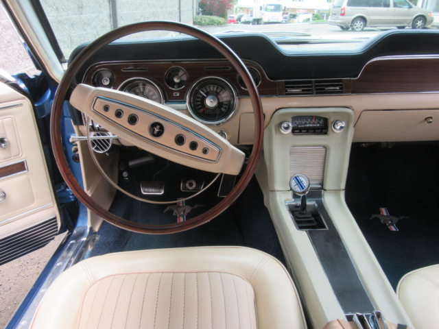 Description: 1968 Ford Mustang GT Convertible 1Beyond Rare - 1 of 43 paint/trim code Very nice restoration - has had a nut & bolt restoration, one of the best in the world 1 of 493 with this motor/transmission code 390 c.i. 4v, 4-speed Factory air conditioning, original center console 9-inch Ford 3.00 limited slip axle, tilt away steering wheel AM-FM stereo, AC (Selectaire), tinted glass, beautiful Acapulco blue White power top, parchment décor buckets, P.S., P.D.B. This car is better than new, documented by Marti report V.I.N. 8F03S201509 102,807 miles $64,950 For more info please call 425-343-7079 or 206-683-5855
