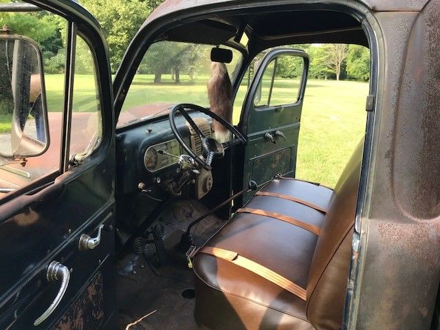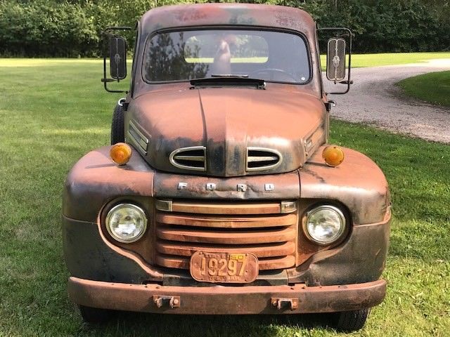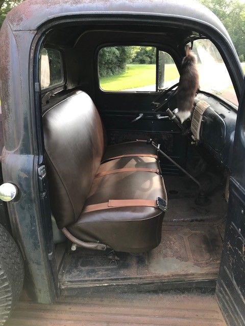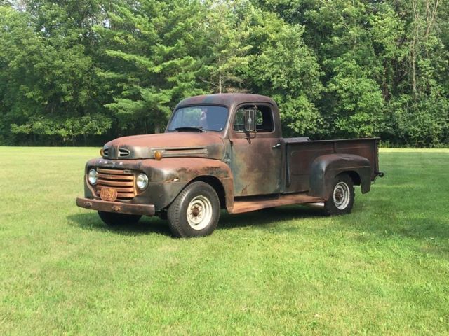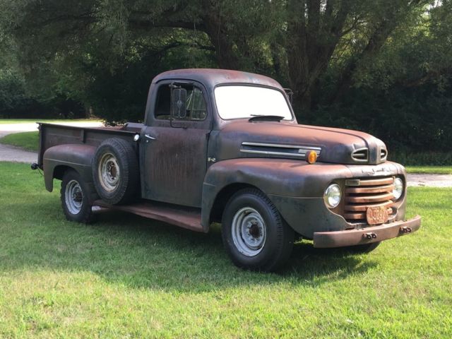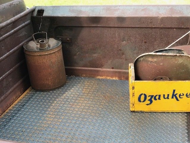 Revived after sitting in fields and barns for decades collecting its patina ¾-ton farm truck with original flathead V8 Reliable and driven to work occasionally - 80 mile round trip Built for the Symco Shakedown (best show in Wisconsin) and "Symco Certified" in 2017 Farm truck geared for stump pulling - 55mph top speed 45,000 miles on the odometer Original except for the dual exhaust and rack and pinion steering Has clear title - sometimes farm trucks weren't titled due to being a farm "tool" Brakes - restored to factory original New wheel cylinders and master cylinder New pre-bent brake line kit and rubber hoses New brake light switch All hardware either serviced or replaced Original soft material brake shoes, extra set included for next brake service Parking brake mechanism is all original - works fair Original drums needed to be re-used, they are made from unobtainium Chassis New shocks Rat rod engineered rack and pinion steering conversion, tie rods, etc. Not much else was serviced - drives like a 50's farm truck Frame is solid - serious metal on a ¾ ton New fuel system from tank to carb except for fuel pump New tires - Farm style mud and snows in rear and period correct tires in front Electrical New starter solenoid, ignition switch, coil, wires, plugs, distributor etc. - entire ignition system new New voltage regulator If an electrical system is operating it is new (switches and wiring) Modern fuse box installed and systems are fused, plenty of room for additional wiring Heater fan is disconnected, heater core still installed Drive train The drivetrain works like a farm utility vehicle was intended Engine cranked over by hand and was properly restarted after storage - doesn't drink coolant or burn oil Vintage oil pressure and temp gauges mounted on engine Carb and ignition completely rebuilt, manual factory choke removed Transmission gear oil changed 4-speed non-synchro gear box - double clutch to shift, forget about downshifting Clutch works well but chatters sometimes when reversing uphill Differential fluid changed Entire lubrication service done on all parts and systems - repair manual included outlining all lubrication Cooling system all new flushed and filled - does not overheat or leak Body 68 years of original patina, bumps and bruises but not rotted to death, very solid Original paint The pictures tell the story, you cannot create this look without the natural aging process Ran across impossible to find original F-series tow mirrors - had them pinstriped Good glass - window regulators replaced, new back window included Bed floor is steel diamond plate Interior As found in the field to keep the theme of "barn find farm fresh" Seat professionally reupholstered with reproduction kit and seat belts added Original speedometer and odometer are mechanical and work - 10mph off 45 = 55 Original steering wheel included with extra column Needing Work Tranny and differential leak Dash gauges are disconnected because I didn't want to rewire them, harness is attached to easily copy, spare used gauge cluster included Steering works good but back to original may be better for heavy duty "truck" durability Take it to the next level - whatever that means to you Truck load of extra parts included - both used and a few new reproduction parts Comes with a tow bar Original bed floor included-deteriorated but I have it No warranty No returns Buyer responsible for pick-up and delivery - prefer local buyer todrive and inspectbefore buying $500 paypal deposit Balance due upon pick-up and within 14-days