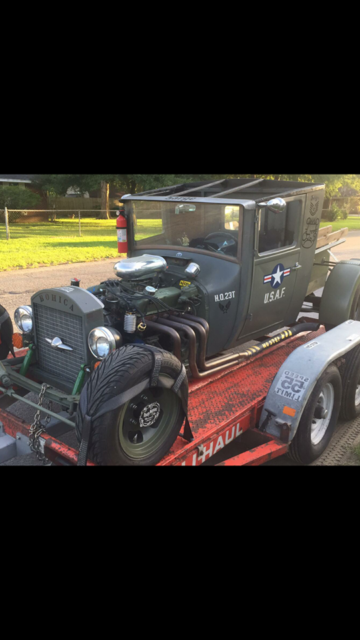 | 1923 Model-T Rat Rod.302 V-8 drivetrainAuto transmission7.5 Mustang rear-endLike new tiresAll lights and blinkers workHas a nice dash clusterFuel cell in bedOnly using it around the neighborhood on short tripsCab is a bit of a tight squeeze due to the year but the wife can drive it just fine.Deliver is NOT available. Must come pick it up. |