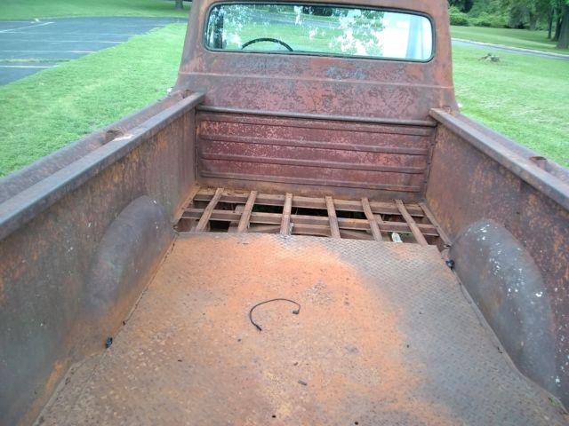 Running, stopping and driving (barely) project truck. I bought this truck a couple of years ago with the intentions of bringing her back from the dead. When I got it, It had been sitting for a couple of decades (not sure exactly but tires are from 70s.) Got it from an older gentleman who said the last owner who bought in 1962 was an electrical contractor, once he retired he parked the truck and never drove it again. It comes with his notebook that has phone numbers with... letters in them (before they were all numbers.) I thought "how bad can it be?" to get her running. Just clean out the gas tank and carb and it will probably fire right up, right? Wrong! I had to address almost every area of the truck mechanically to get it going. The past two years I have hundreds of hours and thousands of dollars adding or replacing... Keys 6v Battery (x2) condensor plug wires points plugs now its a screw in oil filter rebuilt 1904 Holley 1 barrel carb Most or all of the brake lines (cannot remember but some are stainless) all 4 wheel cylinders master cylinder aluminum radiator hoses Big white wall tires poly gas tank (no more rust in the future) Changed gear oil in the rearend, also in the transmission Cherry Bomb glass pack and flex pipe with exhaust hangers for exhaust Water pump Rear glass and weatherstripping Starter One tie rod replaced, other is still in the box Bucked up on the seat using mid fifty to recover the factory seat for a seat that is very close to factory. The inside of the seat is in very good condition, I fixed anything broken I could find. It has rust, which should be obvious from the pictures. The frame is VERY solid.I wanted to clear coat it, lower the truck, and put lettering on the doors. It is currently a blank slate for you to customize your way or restore. Both cab corners are rusted, parts of the floorboard (perfect for some sign sheetmetal.) The lip of the hood, top and bottom of the tailgate are also rusted through. She has diamond plate welded in the back portion of the bed, the front 2' or so is only the frame and no bottom. Wood be easy to cover. The 223 mileage maker I6 will start right up and the three on the tree shifts like it should, and that is something I wanted to keep because you really don't see them anymore. The clutch is good and doesn't slip.I take Ol' Rusty on short trips around town. The reason I said it "barely" drives is that... It will overheat if it sits too long (and idles higher than it should) without moving or from just running for to long.There are no headlights, brake lights, blinkers, or any working exterior lights! Driving something without brake lights is dangerous, and although a hand signal is legal, it needs fixed! The picture showing the headlights is deceiving because I recently got them on for only a few minutes. I went to get the tail lights working and the head lightsquit working. I haven't messed with them since. This truck will come with a complete F-100/International truckwiring kit with a fuse box. The reason why the rear wheels look pushed in is because the bed is a longbed from I believe a F-200? and the truck itself is a F100 short bed. You could shorten the bed (factory riveted not welded) or leave as is. I have not had the truck any faster than 45 mph. It is still a 6v positive ground system. Have never tested the wipers, and the blades are missing although the arms are there. Added another battery (2 total) for more capacity. I recommend you bring a trailer if youare the winner and I can you load it.I can help ship it, only if it is picked up from my house in the South County portion of St. Louis. Years ago the nearest shipping facility was in north county (Ferguson area) is about 30 minutes away from me, which I do not and will notgo to.Clean and clear title in my name.Below is a link to a video I took 09/01/2018. This will show a greater detail than the limited pictures on here. https://www.youtube.com/watch?v=W0-Gr4t4MQ0