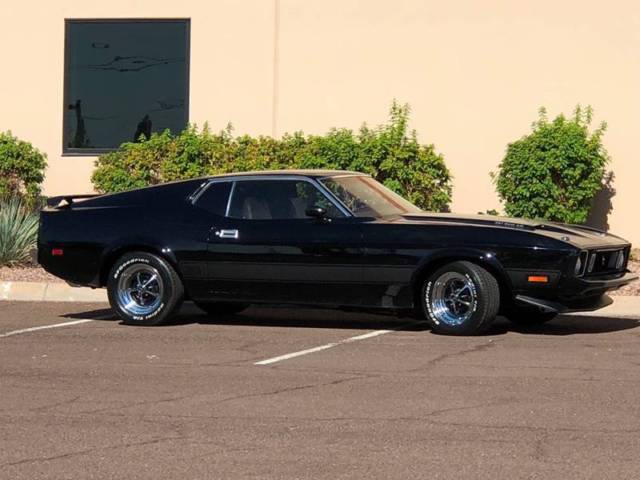 1973 was the last year of the of the Second generation of Mach 1 Mustangs and the last of what most feel we’re the true MUSTANGS. This 1973 Mustang represents the pinnacle of Performance and Style in the final year of the famous platform that started the Pony Car Revolution. Having only one owner since purchased new in LOS ANGELES California you can’t get any better if your looking for a rust free western Mach 1. This Mustang has all... the options you would have ordered if you had a chance to turn on the way back Machine to 73. Top Dog 351 Cleveland 4V backed by Fords Top Loader Heavy Duty 4 Speed Transmission . Bringing up the rear is Fords Famous 9†HD Axle. Desirable options include MACH 1 PERFORMANCE Group, Ram Air, Competition Suspension, Power Steerin, Power Disc Brakes, ON the inside we have Hign Back Bucket Seats, Center Console with Hurst 4 Speed Competition Shifter, wrapped with Deluxe Seat Belts. To monitor all the performance full instrumention including Tachometer are present. Factory Air Conditioning and a Deluxe Leather Wrapped Steering Wheel keep the driver comfortable during those spirited road trips . The Raven Black exterior is accented with Factory Mat Black hood treatment, Mach 1 stripes, Hood Locks,Front Spoiler,Rear Spoiler and Chrome Magnum 500 Wheels wrapped by BF Goodrich Radial T/A’s.
