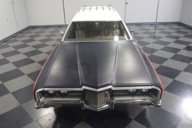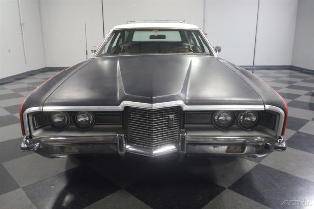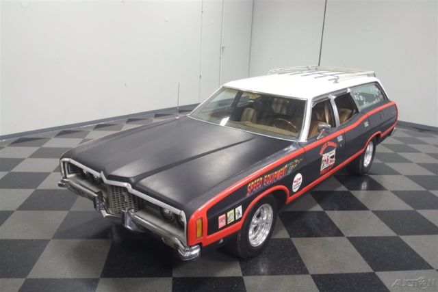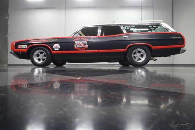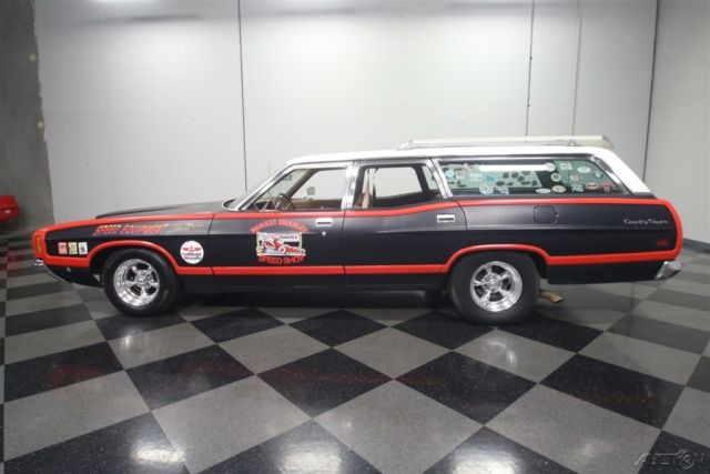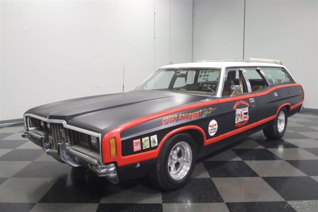 If you were around in the '70s when funky wagons like this 1971 Ford LTD were the coolest thing in parts chasers, then this car will definitely talk to you. Better yet, it packs a thumping 429 cubic inch V8 and a nostalgic look that's all about an era that we may never see again. This is what having fun in old cars is all about. The big Ford wagons were handsome in their own right, with a long nose, chiseled features, and a bit of a kick-up behind the rear doors that made it seem sporting, not bloated. Add in a lean greenhouse that almost seemed chopped compared to some of the GM and Chrysler wagons, and you get a hauler that's not suburban but suburban commando. This one obviously wore wood on its flanks originally, as you can see the bright red outline of the panels still in place on the satin black bodywork. It's quite clean, suggesting a car that has lived someplace warm all its life, and we can't find many faults beyond the fact that it was intentionally built to look this way. Some period-correct decals add to the Hot Wheels look that takes you back to your childhood and even the factory chrome is pretty decent. There's a luggage rack up top, which should be standard on any vintage wagon, and a trailer hitch out back to make it practical. If you're a wagon guy, there's no way you don't think this is cool. Remarkably enough, the interior appears to be almost entirely original and it's in fantastic shape. Those bench seats look wide enough for a football team and the vinyl upholstery should wear like iron, so don't be afraid to go to work. Nice door panels remind you that the Country Squire was actually Ford's top-of-the-line in 1971 and there's faux wood on the inside to make up for the stuff that was removed outside. The dash pad and steering wheel have some cracks, but those are really the lone demerits in a rather well-preserved interior. It also carries factory A/C (needs to be serviced) and its original AM/FM radio, so it could be a first-rate long-distance cruiser. Rear seat space is impressive and there's enough room in the cargo bay to haul all your gear to and from the swap meet or drag strip. That hauling will be effortless thanks to the numbers matching 429 cubic inch V8 under the hood. Wearing a factory 4-barrel carburetor, it makes the kind of torque that will get a lot of work done and is very entertaining under your right foot. It sure look original under the hood, although there's plenty of evidence of routine service, including new plug wires, a recent brake master cylinder, new motor mounts, and a fresh starter. That appears to be original Ford Blue engine enamel in there, and with some cleaning it could look a lot better, although that might detract from the busted-knuckle look the car enjoys. It also uses a C6 3-speed automatic transmission to make it easy for anyone to handle and, of course, power steering and brakes are part of the equation. A newer Flowmaster exhaust gives it a distinctly non-station-wagon sound and it really is clean underneath, as you can see. The stance is just about right, augmented by a set of polished Torque Thrust wheels and staggered 225/75/15 front and 255/70/15 rear blackwall radials. This is another one of those cool cruisers that can really stand out in a crowd yet not break the bank. The fact that it's also practical is merely icing on the cake. Call today!