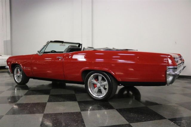 The wonderful thing about vintage Mustangs is their interchangeability. Not only do you get a wide variety of performance and styling parts you can use to customize your pony, but thanks to the long-running small block V8, upgrades can come from the factory as well as the aftermarket. Dig this 1965 Mustang coupe, a nice-looking cruiser with a fuel-injected 5.0-liter heart that feels anything but old. But before we talk about the hardware, take a look at how pretty this coupe is. Perhaps also borrowing from a late-model color pallet, the clean metallic blue paint looks right on the old coupe's bodywork. Perhaps a descendant of Guardsman Blue, it has a great shine thanks to a recent color sand and buff, plus an inviting look that doesn't hide the Mustang's identity behind excessive flash. Instead, it shows off nice sheetmetal, good gaps, and a lot of love that went into the build. Clearly someone was thinking carefully about this car as it was going together, and they kept it simple; no stripes, no wing out back, nothing but a chin spoiler to distract from that classic look. Bright chrome trim is all quite nice, given that the aftermarket is full of replacement stuff, and the whole car has a very polished look. Sure, it has a few signs of use, but you won't be ashamed to show up in this one at the local cruise-in. The black interior looks quite stock, including the low-back buckets wearing fresh seat covers, new door panels with matching pleats, and fresh black carpets on the floor. The original instrument panel is full of stock gauges in fair condition, and there are auxiliary dials under the dash to watch the warmed-over 5.0. The shifter looks like it belongs on a manual transmission, but it's actually managing an AOD 4-speed automatic overdrive, which makes this Mustang a great highway cruiser. A factory 3-spoke wheel is always a welcome addition and the stereo is an AM/FM unit designed to fit neatly in the original slot. The trunk is neatly finished with a reproduction mat plus a full-sized spare tire assembly. Since the modern 5.0 liter EFI V8 is just a Windsor-based 302, it slides right between the '65's shock towers without a lot of hassles. Torquey, smooth, and virtually bulletproof, the freshly rebuilt 5.0 works as well here as it did back in 1993 when it was powering a Fox-body pony. Keeping as many OEM components as possible means it's reliable and easy to service with over-the-counter parts, and thanks to Ford's wonderful EEC-IV engine management system, it starts instantly and idles smoothly every time, regardless of the weather. And you'll never get tired of watching the jaws drop when you pop the hood at a show and everyone sees that familiar long-runner intake and serpentine belt drive system. The aforementioned AOD transmission is freshly rebuilt and is the perfect complement to the injected V8. The modern V8 powers the original rear end with fresh 3.50 Yukon gears inside. A custom dual exhaust system was fabricated for the new motor and it has that familiar 5.0 bark. The front suspension is a custom A-arm setup with rack-and-pinion steering and 4-wheel disc brakes give it modern stopping power. Cool Torque Thrust wheels are always in fashion and they carry staggered BFGoodrich rubber that fits the car's personality perfectly. Given the price of the conversion and the quality of the paint and interior, we have to call this car a screaming bargain. And like most Mustangs here at Streetside Classics, we doubt it'll last long. Call today!