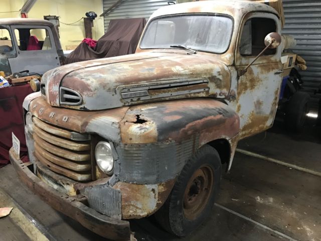 1949 Ford F2-No Title. Does turn over but does not run. Inline 266 that is not frozen. 6 volt electrical system. Wiring in inside of cab.Drive train complete. Missing rear bed and lights. Doors latch and Hood latches. 3 Speed and does shift into gears. Project Vehicle. Look at photos close.Barn find No warranty and sold "as is". Will make arrangements at time of sale with buyer. Currently being stored at Storage garage. |
