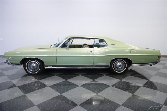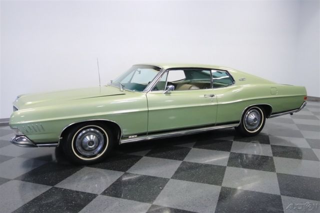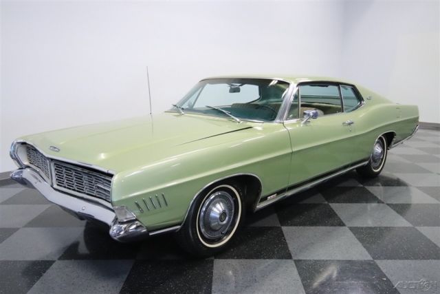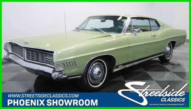 Owning this 1968 Ford Galaxie XL doesn't feel like buying a car...It feels like joining a legacy. There has only been one previous owner, and so you get everything you want from the original window sticker, to the factory A/C interior, to the numbers-matching 428 V8 under the hood. Ford's Galaxie XL coupe had a new and radical face for 1968. The look was downright sporty with headlights hidden behind the full width grille. The body design retained the kick-up at the rear, which goes particularly well with this fastback roof. Overall, this was arguably one of Ford's most attractive designs of the 1960s because it perfectly blended elegance and performance. Green was a popular color in this era, but the factory-correct Lime Gold is one that still looks particularly good today (collectors always love it on Mustangs.) Plus, this hue is nicely complemented by the wide chrome bumpers and stylish 15-inch turbine-style wheel covers. So while there have been the right maintenance and updates over the last half-century, this one-owner car received the right kind of respect and care that will have people calling it a true survivor. Inside is more of this performance and luxury mix. After all, bucket seats were a sporty option, but these are also wide and plush enough for long trips. And the center console with horseshoe shifter is something we love on muscle cars. This is a true cruiser with the dual-spoke steering wheel giving you a terrific view of the extra wide speedometer. And everything on the dash is in its rightful place, including the AM radio that's still on display. But your favorite feature will be the factory air conditioning that's still blowing cold. After all, no matter if you have this full-sized coupe packed with people, or you're just on a solo cruise, this premium Galaxie still knows how to keep everyone comfortable. Lift the hood to see the engine bay filled with plenty of blue oval power. This is an Q-code car, which means the big block 428 cubic-inch V8 with a four-barrel carburetor on top. It's the original numbers-matching motor, and it looks authentic right down to the bold blue block paint. And while this has a ton of originality, you also see signs of the right care with newer components like the master cylinder, belts, and alternator. The 428 was great for everything from the Mustang to the Thunderbird, and as the top-dog option for the '68 Galaxie it nicely upholds the power and luxury nature of this Ford. In fact, this poised driving experience even includes a three-speed automatic transmission, power steering, and front disc brakes. A car this special also comes with all the right paperwork. It includes the original window sticker, bill of sale, warranty card, owner's manual, title documentation, and service manuals. Don't miss this chance at affordable and powerful history. Call today!!!