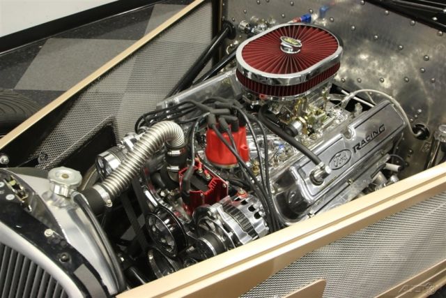 We don't have to tell you this 1933 Ford is a complete custom build, because it already screams it from every angle. You see it in the shimmering presentation, modern A/C interior, performance suspension, and the Mustang 302 V8. So your first impression is that this is the ultimate no compromises build, and as you dig deeper, it only gets better. First off, you're looking at a body from the masters at Factory Five Racing. And you know they are precision gurus for style and speed. Black and gold is a timeless two-tone arrangement, but this has a very modern twist. You're looking at full wrap. It was applied less than a year ago, so it retains an amazing amount of shine as it literally hugs every curve of this cool coupe. In fact, the body is full of surprises. Because while this looks awesome as an aerodynamic coupe, the top unbolts, and the sale comes with a roadster windshield. So yes, this gives you the option of commanding attention as a coupe or roadster all in one! And no matter how you decide to motor, no one will ever mistake it for tame. The low-dipping grille, hood scoop, sport mirrors, and streamlined body with no handles are pure performance car attitude. Plus, the alloy wheels not only add a terrific shine, but also the staggered 17/18-inch size gives this an aggressive stance. The doors open with the touch of a key fob for added distinction. Black is a great coordinating color against the exterior, so this one looks especially terrific with the roof off. The first thing you notice when opening the door are the seats. These have that cool retro low-back appearance, but you can also see modern bolstering for true comfort. In fact, you've got all the right modern amenities with an AM/FM/CD stereo, power windows, cup holder, and cold R134a air conditioning. But no one will mistake this for a pure coddler. This has the right performance equipment with the four-point harnesses, grippy Factory Five steering wheel, and the full set of AutoMeter gauges set in the machine-turned aluminum dash panel. And have you counted the gears on the stick shift yet? We love how the metal mesh sides give everyone a peek at the motor. But for those who want to come in for a closer look, they'll will be rewarded with a bright and beastly V8. It has a fantastic presentation with polished components like the air topper, alternator, compressor, Ford Racing valve covers, and so much more (we dare you to find another component that could be polished.) Plus, the mirrored firewall doubles the brightness! But look beyond the shine, and you'll see some serious power. That's a 302 cubic-inch roller motor with enhancements that include new Trick Flow aluminum heads, an Edelbrock four-barrel carburetor, Edelbrock intake, and shorty headers that feed a growling dual exhaust. You have complete control over this big power and thunderous soundtrack thanks to the five-speed manual transmission. And big power is far from the whole story. Factory Five also builds an outstanding chassis that features unequal length A-arm control arms with in-board coilovers up front, and there's a reinforced adjustable coilover rear. And because there's only about 7,800 miles on the whole build, everything looks clean and fresh. Add in four-wheel disc brakes, power steering, and the grip of modern performance tires, and this mean machine is as good at eating up the highway miles as it is eating up the asphalt. Complete with build receipts and owner's manual, you know no expense was spared creating this retro performance with all the right modern equipment. So don't miss out, call today!