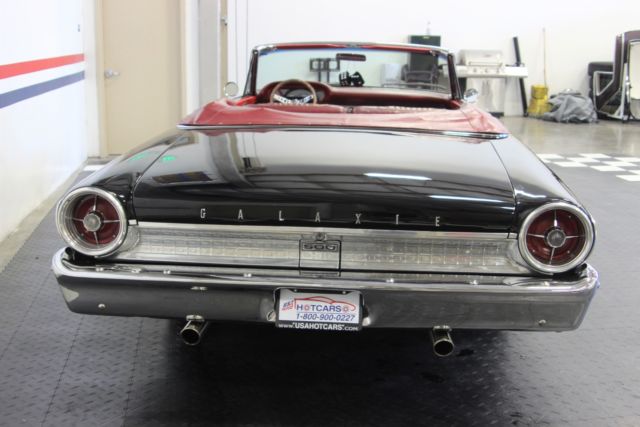Beautiful Black with Red Interior 1963 Ford Galaxie Sunliner Convertible - 390FE, Overdrive Transmission, Air Conditioning and Over 50K worth of Recent Build Receipts. 390 CID. Engine. AOD Automatic Overdrive Transmission Built by Monster Transmissions. Chrome Air Cleaner. MSD Atomic Electronic Fuel Injection System. Edelbrock RPM Aluminum Intake Manifold. TIG Welded Aluminum Valve Covers. Edelbrock Aluminum Cylinder Heads. Billet Specialties Billet Aluminum Accessory Bracket Systems. Chrome and Polished Accessories and Pullies. Electronic Ignition. Elelbrock Aluminum Water Pump. Griffin Aluminum Radiator.... Dual Electric Puller and Pusher Cooling Fans. Magnaflow Dual Exhaust System. Power Rack and Pinion Steering Conversion. Wilwood 4 Wheel Power Disc Brakes. Cross Drilled and Slotted Rotors. Wilwood Billet Master Cylinder and Brake Calipers. RideTech Level 2 Air Ride Suspension Kit. 4 Link Rear Suspension. Ford 9 Inch Rear Axle. Front Sway Bar. Marble Red Vinyl Interior. Split Fold Front Bench Seat. Dakota Digital Analog Gauges. Lokar Shifter. Air Conditioning. RideTech Digital Gauge and Controller with Suspension Presets. Tilt Steering Column with Custom Steering Wheel. Clarion Bluetooth Stereo Receiver. Two JL Audio 8 Inch Subwoofers in the Trunk. New Power Convertible Top. Matching Vinyl Tonneau Cover. Galaxie 500 Exterior and Interior Trim. 15 Polished Aluminum Wheels. Original 1963 Owner's Manual. If you are in the market for that special car then come to our showroom in San Ramon, CA. Make your dreams a reality, call the USA Hot Cars Team TodayNeed financing assistance? Give us a call - we have excellent rates!! My Hot Cars dba USA Hot Cars is the Premier Classic and Muscle Car Dealer with over 29 years of helping customers from around the world find the car of their dreams.Call us at: USA Hot Cars 877-718-1091, or 1-877-718-1091.Email us at: .Like us on FACEBOOK: MyHotCarsFollow us on TWITTER: MyHotCarsReview us on YELP: biz/usa-hot-cars-san-ramonNew Inventory Arriving Every Day at
