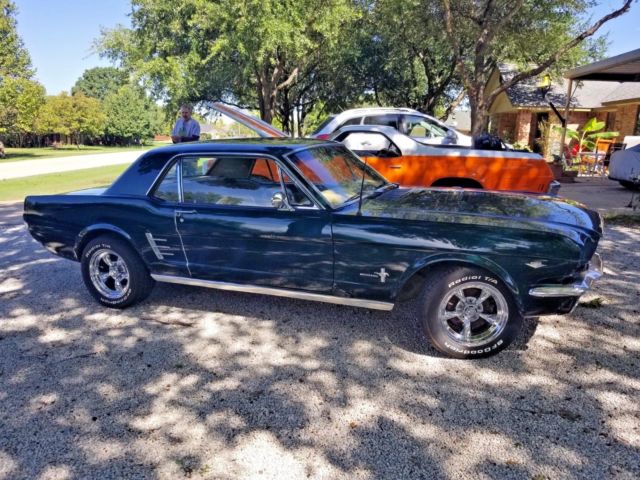 1966 Ford Mustang"C" Code 289 V83 speed manualWorking AC - blows cold!Aluminum radiator and new water pumpover 20 years of single family ownership. Up for your consideration is this lovely 1966 mustang coupe, Painted in the Famed green color scheme like the bullitt car it presents well and looks very sharp driving down the road. the car has benefitted from an A.C retrofit with update compressor, it blows cold.and an aluminum radiator with water pump. The chrome torque thrust style wheels are in excellent shape with no peeling on pittingthe tires are in great condition as well. The car could use a light restoration or leave as is and enjoyThe interior is in good condition for the age, headliner is still nice and tight with no sagging. The car runs strong and sounds great with dual flowmaster exhaust. There is a few areas on the body with some rust showing such as wheel arches, and door striker area.The torque boxes are structurally sound with no rot, and floors show very minimal rust. If you have questions please askI will ship world wide. |