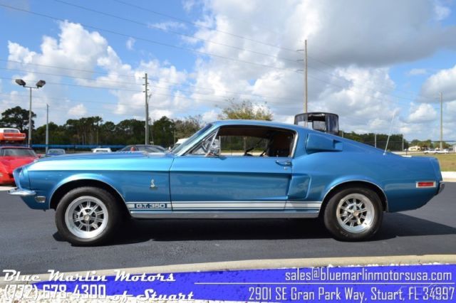 | This is a real documented 1968 Ford Mustang Shelby GT-350. This GT-350 Is equipped with a 302 V8 married to a 4 speed manual transmission. It has 3. 89 gears in the rear. The motor was replaced by Ed Elkins in Stuart FL 12 years and approximately 1. 00 miles ago. This is a factory A/C. Power steering. Power disc brake car. The interior is saddle tan leather and looks great. If your are looking for a great driver GT-350 than this is the car for you! |