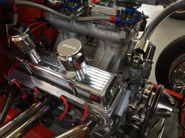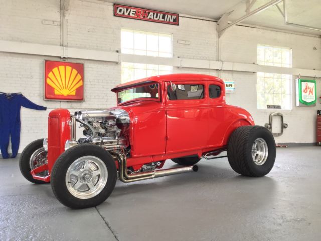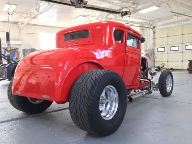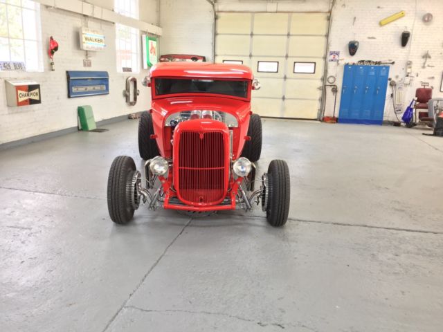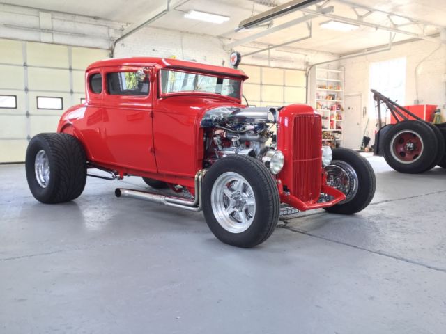 Up for auction is a beautiful 1931 Ford. Originally built 30 years it was just bought back and redone by the same professional builder an SBC 355 (350 bored .30 over). It has dual Holley 450 carbs stacked on a Wieand Tunnel Ram Intake Manifold finished off with a new shotgun scoop. The 350 Turbo Trans is freshly rebuilt and is very smooth. Has 8 ¾ Chrysler rear end with a 323 gear. Power is transferred to the rear end by a polished aluminum drive shaft. Also has a big stall converter. Both the engine and trans were professionally cleaned and painted to give that shiny appearance to match all the polished aluminum or stainless items on the car. Up front is a new 4-inch drop axle with disc brakes and stainless components. $5800 spent the front end alone. Rear has coil over shocks. The body is rock solid and the new paint looks great. Windows have a light tint. The undercarriage is finished between the rails with stainless cut to perfectly fit. Interior has new cow hide leather. It has power windows. Ididit column and steering wheel look great with the billet dash and new instruments. Also has am/fm/cd player. Lots of bling will definitely make people take notice.