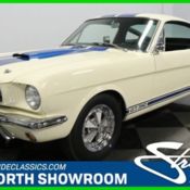 There's no rebadging or other visual sleight of hand involved here. This 1966 Ford Mustang Shelby GT350 is the absolute real thing! It still features its original colors both inside and out, and harbors numbers matching power under its scooped hood. No need to rely on trust here, either - this ultra-rare specimen will pull into its next home carrying not only build receipts and photos to document its restoration process, but also authentic Shelby certification as testimony it's one of their prized masterpieces. Its Wimbledon white exterior, set off with blue stripes across the length of its body and just above its rocker panels, represents a signature color scheme for this true automotive icon and it's looking great here. The paint has good depth and a nice shine and the striping shows razor sharp edges and consistent color. This restoration took place in the recent past, so you won't find any signs of fading or oxidization anywhere. When the session inside the paint booth was completed and the re-assembly process began, an impressive array of either entirely new or thoroughly restored exterior fittings were mounted in place - the bumpers in both front and back, taillight bezels, side mirrors, door handles and trim all feature an unblemished, shiny chrome finish and you'll find crystal clear glass on all four sides of the cabin that's surrounded by fresh rubber seals. Many classic car enthusiasts have come to associate those distinctive quarter panel windows as a defining feature of Shelbys, but as a '66 this GT350 was among the first to feature them. Who doesn't love that unmistakable new car smell? It's in full effect here - the collection of nearly new components inside the doors still radiate plenty of it. Climb inside and you'll be surrounded by a great looking vintage driving environment. The bucket seats up front show no real signs of wear and the folding bench seat in back functions just as intended while reflecting the same condition. Both sit over an expanse of black carpeting that also looks to have been recently installed and is accented nicely by the Shelby-branded floor mats up front. An authentic Shelby steering wheel is still on its column, while just beyond it, the dash area is really looking sharp, with an instrument cluster that's carrying an assortment of fully functional and easily readable gauges, control knobs and switches that are all nicely finished, and a straight, fresh dash pad upon which sits an authentic Shelby tachometer. Raise the hood and you'll be greeted by a well-detailed engine bay, with the original 289 cubic inch V8 holding court at its center. Underneath its properly badged chrome air cleaner sits the generously proportioned 4-barrel carb that helped equip this GT350 with an extra 30 horsepower over its more commonly encountered stablemates. Everything is in good order here - the Monte Carlo bar joining the inner fenders for added rigidity and the shock tower braces still have their clean black finish and all hoses and wiring look fresh. The drivetrain is numbers-matching from front to back - the original 3-speed automatic transmission is still in place, as is the 3.50 ratio Power Lok rear end. A look below will provide further evidence as to just how thorough the restoration process was - the undercarriage is well-prepped and really looks great. Front disc brakes provide fade resistance while helping to bring the set of 15" Cragar wheels outfitted with Goodyear radial tires to dependable stops. This 1966 Ford Mustang Shelby GT350 is an ultra-rare, thoroughly restored piece of American automotive history that would be the undisputed crown jewel of any collection. Call today!