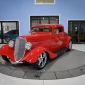 We don't have to tell you this 1933 Ford is a complete custom build, because it already screams it from every angle. You see it in the shimmering presentation, modern A/C interior, performance suspension, and the Mustang 302 V8. So your first impression is that this is the ultimate no compromises build, and as you dig deeper, it only gets better. First off, you're looking at a body from the masters at Factory Five Racing. And you know they are precision gurus for style and speed. Black and gold is a timeless two-tone arrangement, but this has a very modern twist. You're looking at full wrap. It was applied less than a year ago, so it retains an amazing amount of shine as it literally hugs every curve of this cool coupe. In fact, the body is full of surprises. Because while this looks awesome as an aerodynamic coupe, the top unbolts, and the sale comes with a roadster windshield. So yes, this gives you the option of commanding attention as a coupe or roadster all in one! And no matter how you decide to motor, no one will ever mistake it for tame. The low-dipping grille, hood scoop, sport mirrors, and streamlined body with no handles are pure performance car attitude. Plus, the alloy wheels not only add a terrific shine, but also the staggered 17/18-inch size gives this an aggressive stance. The doors open with the touch of a key fob for added distinction. Black is a great coordinating color against the exterior, so this one looks especially terrific with the roof off. The first thing you notice when opening the door are the seats. These have that cool retro low-back appearance, but you can also see modern bolstering for true comfort. In fact, you've got all the right modern amenities with an AM/FM/CD stereo, power windows, cup holder, and cold R134a air conditioning. But no one will mistake this for a pure coddler. This has the right performance equipment with the four-point harnesses, grippy Factory Five steering wheel, and the full set of AutoMeter gauges set in the machine-turned aluminum dash panel. And have you counted the gears on the stick shift yet? We love how the metal mesh sides give everyone a peek at the motor. But for those who want to come in for a closer look, they'll will be rewarded with a bright and beastly V8. It has a fantastic presentation with polished components like the air topper, alternator, compressor, Ford Racing valve covers, and so much more (we dare you to find another component that could be polished.) Plus, the mirrored firewall doubles the brightness! But look beyond the shine, and you'll see some serious power. That's a 302 cubic-inch roller motor with enhancements that include new Trick Flow aluminum heads, an Edelbrock four-barrel carburetor, Edelbrock intake, and shorty headers that feed a growling dual exhaust. You have complete control over this big power and thunderous soundtrack thanks to the five-speed manual transmission. And big power is far from the whole story. Factory Five also builds an outstanding chassis that features unequal length A-arm control arms with in-board coilovers up front, and there's a reinforced adjustable coilover rear. And because there's only about 7,800 miles on the whole build, everything looks clean and fresh. Add in four-wheel disc brakes, power steering, and the grip of modern performance tires, and this mean machine is as good at eating up the highway miles as it is eating up the asphalt. Complete with build receipts and owner's manual, you know no expense was spared creating this retro performance with all the right modern equipment. So don't miss out, call today!