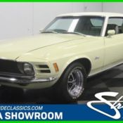 Mustang coupes represent one of the biggest bargains in the old car hobby today. Often living in the shadow of their convertible and fastback siblings, cars like this 1970 Ford Mustang Grade coupe offer the same performance, same handsome interior, and same street presence, all for less cash. Talk about a win-win situation! Refinished a few years ago, this slick pony is just more proof that there's no such thing as an ugly 1970 Mustang. It's wearing correct code 2 Light Ivy Yellow paint, which is how it came from the factory, and it still looks appealing today. From the wide-mouth grille to the sport mirrors to the traditional three-element taillights, this car is pure American fun from any angle. Finish work is extremely good, particularly for a car in this price class, and offers a high-visibility shine and excellent gaps, all of which make it stand out. Subtle details reveal themselves after you get acquainted, such as the Mustang script on the front fenders, blacked-out tail panel, and twin chrome tailpipes sticking out below the bumper. Add in a nicely done white vinyl roof, and you have a great-looking pony car that will be the center of attention but one that never seems to be trying too hard. High-back bucket seats anchor a nicely finished interior in the original code AG Ivy Green Houndstooth, which is extremely attractive. Coupes and fastbacks shared the same parts, and from behind the wheel it's almost impossible to tell them apart. The deeply set gauges look sporty and in this car appear to be in completely original condition, and we believe the door panels are original equipment as well. The carpets and dash pad are in such good shape that they have to be fresh, and the woodgrained appliques on the doors and console are bright and crisp. Options include factory A/C (needs to be serviced) and an unusual AM/FM/8-track stereo in the dash. The trunk has been lined with sound-deadening materials so this Grande sounds suitably hushed inside, and a full-sized Magnum 500 wheel and matching BFG radial are a nice find. Performance is entertaining, too, especially when you're carrying a great-running 302 cubic inch V8. Rugged and easy to maintain, the 302 is a great choice and thanks to an Edelbrock 4-barrel carburetor and intake manifold, there's plenty of performance on tap. Inside there's a mild street cam so it pulls hard but isn't fussy, and MSD supplied the coil and distributor to light it up. The engine bay is neatly detailed with a chrome air cleaner and Ford Racing aluminum valve covers and it's nice to see details like original-style hose clamps, which suggest someone really cared. The transmission is a C4 3-speed automatic feeding a stock rear end with 3.00 gears inside, making this a low-stress cruiser. The exhaust system is very recently installed, including great-sounding mufflers and those cool chrome tips, and it's impressively clean underneath. Handsome Magnum 500 wheels always look right and carry 225/60/14 BFGoodrich T/A radials all around. Neatly sorted and ready to enjoy, this high-visibility Mustang will get admiring glances anywhere it goes. Even more importantly, you'll feel like a million bucks from behind the wheel. Call today!
