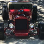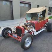 It's a super stylish street rod based on what's arguably the most influential car in American history. This 1923 Ford T Bucket is a great looking, well configured ride, with fresh power under its hood that sounds so good you'll want to fire it up just to take a listen. It's an undeniable head turner that comes equipped with features to make it equally at home drawing attention on city streets or waging battle as a worthy competitor on the local car show circuit. Due to their sheer novelty, most T Buckets have a certain cool factor already on board, but it takes planning and execution to take things to the next level. When you see the way the black paint on this vintage Ford contrasts with its chrome suspension parts and sidepipes, how its exterior fittings pop against their dark surroundings and how everything blends together so seamlessly, you'll know right away that this street rod is already there. Its black paint looks strong and if you wanted to take it up a notch, a little elbow grease will get it there. The pinstripes on the radiator cover, rear end pumpkin and surrounding the brake lights are a great finishing detail. A clean white convertible top sits in place for protection against the elements, fitting great and sporting a clear plastic window in back. Take notice of the low-slung stance - it fits this aggressive looking roadster perfectly. A very nice white vinyl interior sits inside the doors, featuring a tuck and roll pattern on the fresh-looking bench seat that's matched by the door and kick panels. Just in front, the floor shifter has plenty of height and sits within convenient reach. The dash area is very nicely laid out, with an assortment of SunPro gauges sitting in the aluminum plated cluster that are easily readable and fully functional that are joined by the SunPro tach mounted on the steering column. The push button starter is a nice added feature. An aluminum 8-gallon fuel cell sits alongside a securely mounted battery in back, stylishly concealed by a white vinyl cover that features the same tuck and roll pattern as that of the seating. When a car features an open engine compartment, aesthetics joins power output as a top priority. The 350 cubic inch V8 on display here has things covered on both accounts. It's only logged about 400 miles since being installed and is running and sounding great, while producing a deep, aggressive exhaust note into aftermarket headers leading to a pair of very sharp looking sidepipes. It's armed with an Edelbrock 4-barrel carb sitting on a Weiand intake manifold to up its power game and receives maximum spark that's delivered via an MSD Blaster 2 coil. The engine sits in front of an eye-catching aluminum firewall and wears a pair of chrome valve covers that blend perfectly with the other components inside the engine compartment, including chrome air cleaner up top and the chrome alternator and aluminum fan and housing just in front. A 3-speed automatic TH350 transmission sits just behind it, shifting with smooth precision. Power disc brakes at all four corners provide fade-resistant stops as this great looking street rod cruises on its set of 15" polished aluminum wheels, outfitted with Cooper Trendsetter tires up front and Hankook Ventus tires in back. A look below at the undercarriage is a must in this case - the frame looks great alongside the chrome suspension components both in front and in back. Very nicely configured and amply powered, this 1923 Ford T Bucket carries all the visual impact you could want in a street rod. Call today!
