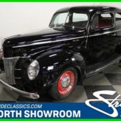 You're going to say WOW about this 1940 Ford 2-door sedan for much more than just the value price. It's a custom street machine that was painted in the '60s, and so the flames are true and not a tribute. But there were also solid investments in the V8 and amenities to let you know this has been a well-respected street machine for many decades. The '40 Ford is sought-after today because we love to turn them into retro-style street machines, but this one is a true original that was already done back in the day. In fact, the consignor had this car for over 30 years, and the previous owner had it for two decades before that. So we can trace the history back to when this was given the cool paintwork in 1968. Those custom multi-tone flames part of the true lacquer paintjob, which means people who know hot rods are instantly impressed. This looks terrific for being a half-century old, but that doesn't mean it's perfect. Instead, the "aged to perfection" appearance is the best conversation starter about how this is one of the few survivors from the original hot rod days. Plus, the details are terrific with solid bodywork and the beefy black bumpers that match the grille and running boards. And the chrome Cragar wheels are staggered 14/15 inches front/rear to add to the aggressive stance. Inside the tan cloth interior is quite inviting. In fact, this is the street machine that will keep family and friends happy with amenities like power front windows, a modern AM/FM/CD stereo, and R134a air conditioning. But this is also a true driver's machine with the Lecarra sports steering wheel on a tilt column. And beyond that is an upgraded set of backlit VDO gauges. You see more evidence of investment under the hood. There's plenty of shine radiating from within the painted engine bay thanks to the valve covers, air topper, alternator, and so much more. Plus, the 350 cubic-inch Corvette motor is a later installation (the odometer reflects the mileage on the engine.) And not only does it look good, but it has all the right upgrades, too. This includes a Holley four-barrel carburetor, Edelbrock intake, upgraded pulleys, electric radiator fan, MSD ignition, and shorty headers that feed the rumbling dual exhaust. Out on the road, you have a Mustang II-style independent front suspension, power steering, front disc brakes, and a three-speed automatic transmission. So this is a true easy-cruising classic. Rarely do you get a chance at a genuine classic hot rod. Not only does this have a great story, but it also has all the right upgrades in performance and comfort. So if you want a total package classic at an unbeatable price, don't miss this deal. Call today!!!