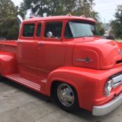 1956 Ford C600 Bigjob! Ok so it's time to let go of the cab over! Truck was originally a single cab with 22 ft tilt flatbed. After thousands of hours of metal work. body work and painting this is one of the coolest cabovers around!! I have owned it for 10 years and had lots of fun with it cruising, pulling campers and trailers. The truck is built on an 88 Chevy p-50 motor home chassis 4wheel discs brakes, heavy springs, 4.56 rear gear, 454 fuel injection, 4L80E trans, 45 gallon fuel tank, truck has A/C C/C P/B P/S, tilt gm column. engine trans wiring harness gauges column all 95 gm, the truck runs great and is a pleasure to drive with plenty of towing power, Don't need help selling, and I don't respond to emails or tex, thank you. Any questions please call 843-846-2727 Also might entertain interesting trades with cash.