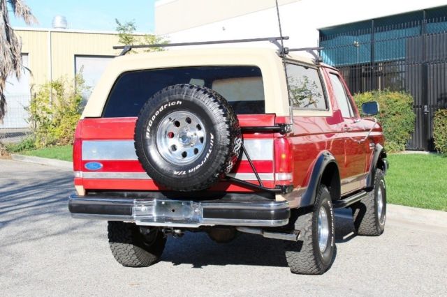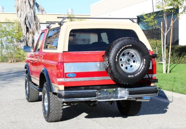 Gorgeous California 1989 Ford Bronco 44Eddie Bauer edition94,462 original miles - Two owner!The 5.0 EFI idles perfectly and runs clean and smooth; it does not leak, smoke, or make any unusual noisesThe automatic transmission shifts on time through all the gears.This Bronco runs, drives and accelerates great and is a pleasure to drive! 44 engages properly The engine compartment is very crisp-clean and well sorted (good hoses belts, etc)Brakes, steering...and suspension are in good condition!All mechanical, electrical and climate control systems are all in proper working orderIce cold air conditioning/heat warms quicklyPower windows work properly, including rear windowAll gauges show normal and accurate readingsNice stock beautifully polished wheels.The BF Goodrich raised letter tires are correct and are also in good condition Aside from some minor touch up's the paint is all originalThere are minimal chips, nicks, clear coat peeling, hazing, fading, discoloration etc.Nice trim, weather-stripping and rubberCrisp and clean lights and lensesThe interior is in superb original conditionThe seats are excellent!The headliner/visors are in great shapeNice door panels/clean original carpetingTurn key and ready to be Carfax/Auto Check certified vehicle/no accident vehicleVERY CLEAN Has always passed strict California emissions WE FINANCE/ DELIVER AND SHIP WORLD WIDE