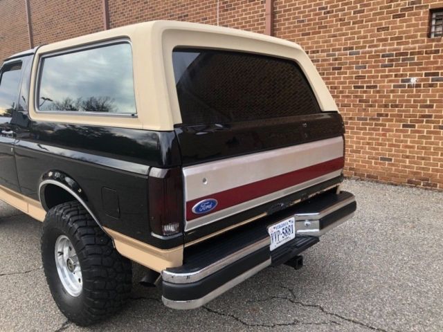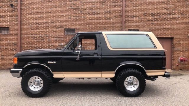 1990 Ford Bronco Eddie Bauer 5.8l with a clean carfax report, no accidents,this truck is from Virginia.Runs Great ! Turn key always starts no problem, 4wd works flawlessly, over drive transmission is very nice on longer drives. Rides smooth and...has plenty of power. Sounds amazing! Barn find brought back to life. - Manufacture date 06/1990- Less than 20k miles on rebuilt - 4 previous owners - Original paint- All work done In 2018 - Original E4OD Transmission - Original Manual 4X4 Transfer-case - Automatic locking hubs - 1996 Bronco wheels - 33x12.5r15 BFG KM2's - 2" leveling coil, w/ quality alignment - New drums and front calipers, rear wheel cylinder, front & rear break lines. - 1995 5.8l OEM roller cam motor from LKQ off of eBay. Like New rebuilt see photo- New gas tank and fuel pum, stainless fuel lines from tank to fuel rail.- New distributor, coil, plugs & wire, 130amp 3g alternator - Optima red-top battery