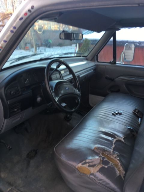 Low mileage. Less than 100,000 (see odometer pic) Rear wheel drive F350 dually truck with working hydraulic lift gate. 9.6ft long stake body. The sides are off right now but I have them. Great tires, mechanically sound Fuel injected 351 and a Very solid cab. Custom built heavy duty frame hitch, removable class 3 that plugs in to the 2 receivers on each side of lift gate(see pics). Trailer brake control. Suspension is nice and tight. This is an excellent work truck. Great heat and the AC works. 2 fuel tanks and they both work Perfect. It's turn key ready to go. I wouldn't hesitate to drive it across the country. Doesn't leak a drop of anything. The bed sides have some rust/rot as do the lower fenders. Bed sides could be patched and fenders replaced easily. The chassis is very clean and solid.
