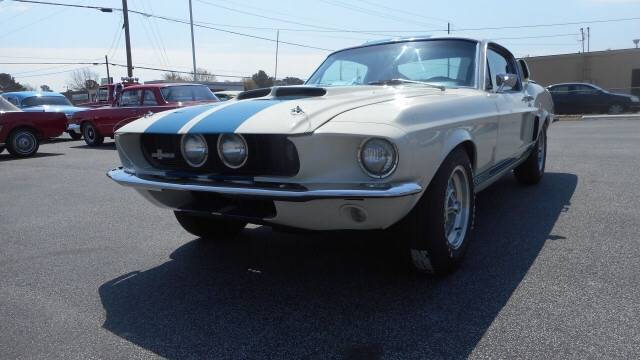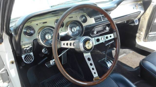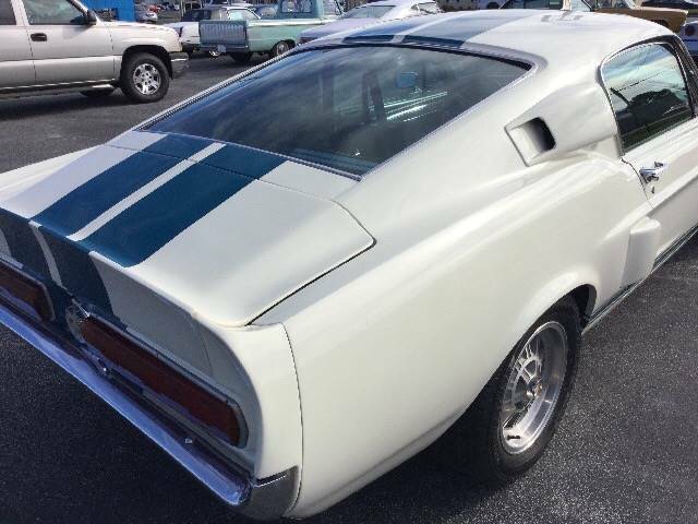 | FACTORY A/C, 10 SPOKE WHEELS, 1 OF 10 WITH THE SAME OPTIONS . This car comes with a complete Martie report that shows how very original this GT 500 has remained but white with blue stripes every option to example the original 1965 GT350 but grownup to be the big engine and first year for new comfort options for customers. |