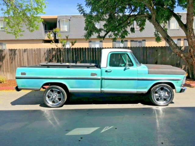 1969 Ford F250 pickup• Blue on black, 390ci engine with C6 transmission, Long bed 2wd.• I have had it since 2013. The truck sat for 16 years before I purchased it. Very solid truck. I have driven it up and down the west coast many times without issues.• This truck is not a show vehicle it has surface rust, faded paint, holes, dents, dings and scratches all over the body. The hood is faded raddle can black.• Truck has estimated mileage of 78K. Current odometer/ speedometer not hooked up due to missing speedometer cable. Currently registered and insured in CA. Pink slip will accompany vehicle but custom black CA plates will not.• Last year; engine heads rebuilt, replaced carburetor and exhaust headers, tail lights, headlights and cooling fan.• Last 3 years; brakes, kingpins, front suspension, differential and steering box rebuilt, new carpet, floor mats, distributor, battery, door panels and grant steering wheel installed.• Upgrades over the last 6 years; Lokar floor shifter, driveshaft loop, 20" wheels, Pro-comp gauges with aluminum dash insert, edelbrock air cleaner valve covers and performance aluminum intake, airplane style seat belts, aluminum pulleys, new power steering pump, aluminum radiator, aluminum water pump, electronic ignition, hood pins, power steering cooler, transmission fluid cooler, engine oil cooler, engine oil filter relocation kit, aluminum transmission and engine dipsticks, front and rear aftermarket sway bars. Polyurethane bushings and bumper stops, chrome bed rails, grant steering wheel, chrome glove box and mirrors, aluminum differential cover and air cleaner riser, headers with performance exhaust system, chrome bumpers front and back, dash cover. Etc....• Issues with the truck; steering box and transmission have started to leak fluid, a few electrical gremlins exist, one of the bed mounts is loose, been sitting all winter and needs a tune up. Also, no radio.Please ask questions, contact me for more pictures or information before you bid. Vehicle is sold as is where it is with no warranties or promises. The vehicle in the pictures is what your getting.Payment will be via PayPal only. $500 deposit due at auction end, remainder within 73 hours. Deposit is non refundable and will be forfeited after 73 hours of auction end if not paid in full.Appointment will be needed to pickup vehicle. Pickup must be made withing two weeks of auction end.10% of vehicle sale goes to K9 Mission charity.Thank youJason