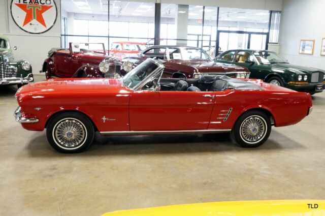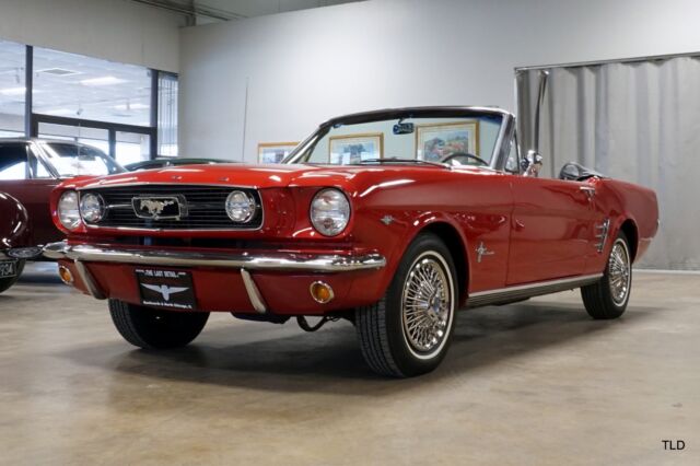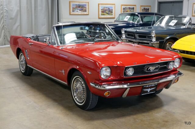 Exceptional Rangoon Red ExteriorDeluxe Black Interior w/Wood TrimPower Black Soft Top w/Boot Cover289 V8 w/Automatic TransmissionRetro Sounds AM/RM Radio w/CassetteRecent Service Including Tune up & BrakesBeautifully finished in Rangoon Red and complemented by a black soft top and Deluxe interior, this Mustang will make you the envy of all your neighbors!! Pony seats blend nicely against the wood applique across the dash which is highlighted by a...Retro Sounds AM/FM Cassette radio. Additional features include power top, emergency flashers and fog lights. Under the hood and youll find a 289 V8 thats backed by an automatic transmission, and recent service includes brakes and a tune up. Please give us a call to find out more information today!