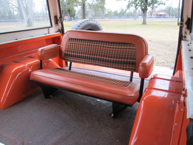 | Ford introduced the Explorer option package for the Bronco in 1973. The Explorer package included unique exterior colors and special unique interior treatments. automatic transmission. and power steering. The color and interior pattern scream mid 70's style. This 1973 Ford Bronco Explorer is in good original unrestored condition. It is next to impossible to find a Burnt Orange Explorer package that is mostly original and unrestored. It has never been cut of lifted. The truck has been a one-owner truck for most of it's life at a lake house in Idaho. The exterior shows mostly all original paint. It has assorted a few bumps. bruises. and scars that only add character to the vehicle. The truck has great patina throughout. The paint is certainly not perfect. but original paint from 1973 is never going to be perfect. I personally like the vehicles unrestored and preserved. If you are looking for a vintage Bronco to restore. this is a perfect candidate. It doesn't need much of anything. To some of us this one looks better than the newly restored shiny example. and this one is certainly more difficult to duplicate. There is a hole in the left rear fender where a CB antennae was once mounted. I have the antennae should you care to reinstall it. Has four new all terrain tires. Glass is all good. Interior is in very nice original unrestored condition. Couple of small tears in the driver seat vinyl that is not conspicuous. Original orange explore fabric still shows very vibrant color. Original floor liner still in place. The rear cargo area sheet metal has been repainted. Gauges. wipers. lights. radio. latches. window winders. seat belts all functional. Mechanically in good condition. Starts. runs. stops. and steers as it should. Engine looks as it should with nice original finish and factory labels. decals. and ink stamps. most of the engine compartment components are factory original. Battery is new. Has the usual oil leaks but does not smoke or burn oil or make any unusual noises. Four wheel drive engages perfectly and pulls strong. Factory automatic transmission shifts as it should. The brake system is new with an added vacuum power booster. Like most of the original drum brake broncos this requires significant pedal pressure to stop. Chassis is in good condition without signs damage or significant rust. Rubber parts show their age but function fine. New main tank fuel sender. new fuel. and new fuel pump. Optional auxiliary fuel tank and the associated switches and fuel gauge all work. My name is Edward. Feel free to contact me at 251 769 4742 or edsdrivein@att. net On Mar-06-15 at 07:40:08 PST. seller added the following information: |
