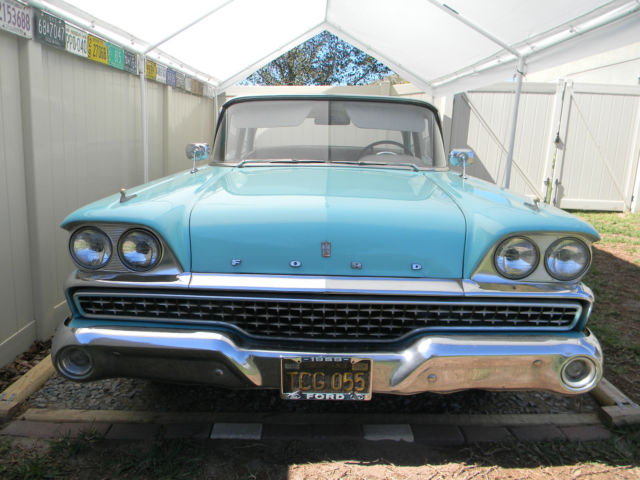 | 1959 Ford Custom 300 2 Doors 6cc inline 3speeds on column This is a nice daily driver in an interesting color combination (sea foam green an white). with a very nice interior. Car was restored several years ago (1999) and holding up nicely. Engine is a very solid in-line 6cc with a 3-speed column shift. Paint looks good but is not a high quality paint job. There are some chips and minors scratches. This car turns heads wherever it goes. The car has a new battery. a recent tune-up (plugs. points. rotor. cap and wires). The radiator was recently repaired. cleaned and paint all fluids are new. There are no rust issues under the car at all. The car built in San Jose California and never left until 2014. Chrome has a little pitting but stainless is very nice. All gauges are working. headlights. taillights. signal lights. speedometer. temperature. gas. wipers. all windows roll up and down like new. runs very smooth. shifts smooth tough the gears and exhaust is quiet. Very solid car for the age. start in the first crank. I drive the car often to local car shows and receive a lot of thumbs ups. Runs like a champ! The floorboards. frame and trunk pan are excellent (original jack). all trims and emblems. the car is complete. I have some extra parts and go with the car. Also a lot of historical information about the car: receipts. jobs done. etc. Clear Florida title in my name. original manual owner (not a copy). 78. 31 original miles. 5 very good tires. new brakes. new 4 shocks and original California 1959 license plate. If you have any questions feel free to contact me. If you are near the area and would like to stop by to look at the car you are welcome to do so. My feedbacks speak for myself. Please. if you are not intending on paying. please do not bid. |