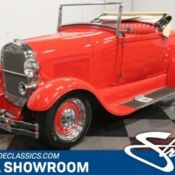 Looking for maximum visual impact with tons of power to go along with it? Check out this 1933 Ford Speedstar. Its angular body, dressed in a classic hotrod color scheme, is sure to pull focus while the rumbling big block under the hood stands by to smoke the beefy rear tires with a mere tap on the accelerator. This ride is certainly no shrinking violet - it will standout in any crowd and in the best possible... way. Speedstars are all about making a strong, well-crafted statement and this '33 definitely does that, with its fiberglass body clad in glossy black paint that's dressed with flames while teaming with a sizable engine to provide an outstanding power to weight ratio. The sharp incline of the grille and front windshield combine with the chopped cabin and shaved door handles for an appearance that's both classic and futuristic at the same time and the exposed front suspension affords you a great look at its polished components. With the front end hunkered down over the front axle and the rear perched over some seriously sizable rubber in back, it gives the impression that this Speedstar is poised to strike as the streetlight turns from red to green - which, of course, it is. The sleek red leather interior provides a perfect contrast to the exterior and shows plenty of craftsmanship and detail. There's a lot of room inside this cockpit - the pair of bucket seats are nice and broad and there's quite a bit of available real estate in front of them to accommodate taller drivers. A custom center console puts the shifter within easy reach and just in front of it, the dash area carries a trio of white-faced TPI gauges to monitor vital engine functions. At its center, a flip down monitor navigates the Kenwood stereo, which includes speakers mounted adjacent to the seats, as well as separate tweeters for a top notch audio experience. Even the trunk is dressed to the nines, with its combination of leather walls and spotless red carpeting. When a car carries as much visual impact as this one does, you'd rightfully expect plenty of accompanying performance capability. Rest assured that this modded Ford delivers it in abundance. There's a 502 cubic inch big block eagerly waiting to spring into action just under that long sloping hood, and it's armed with an array of top tier components to get the most out of its substantial displacement, including a pair of Edelbrock Performer headers and an Edelbrock 4-barrel carb as well as a performance cam that adds a great rumbling lope without wreaking havoc on available vacuum. The big block pairs with a 4-speed automatic 700r4 transmission and exhales into a pair of Hooker headers to minimize backpressure and send a deep commanding note out through the Borla dual exhaust. Up front, there's a sizable aluminum radiator that teams with an electric cooling fan to keep operating temperatures under control and the surrounding collection of polished accessories in the engine bay provides eye candy galore - even more stands by just outside in the form of chrome upper and lower control arms and polished coilovers in both front and back. Disc brakes at all four corners that feature polished, drilled and slotted rotors for excellent heat dissipation provide plenty of stopping ability, while a set of American Racing combo wheels that are sized 17" in front and a full 20" in back give this one of a kind ride an awesome inclined stance. You don't often come across the combination of top tier components and outstanding craftsmanship offered by this 1933 Ford Speedstar. Call today!