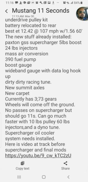 We are, Medina Wholesale, LLC, from Wadsworth, Ohio. Home of Norwalk raceway park. Today, we are very unhappy to be listing our supercharged, GT Hatchback.We bought this car to run at the track and quickly realized we have zero spare time with no break in sight anytime soon. Somebodys going to get a heck of a car. We sell quite a few vehicles on Ebay and will be selling quite a few more. We are very honest and descriptive so that you can bid with confidence and we can get fair market value. Please, check our feedback, it's perfect with many saying vehicles better then described. We can help with an independent company to inspect vehicle prior to bidding as well as another that will trailer your vehicle anywhere in the continental U.S. at a great rate, usually under a dollar per mile. We are honest and need you to he as well, we're just a couple a guy's trying to put food on the table just like you. Please, check your finances and ask your questions before you bid, not after. A winning bid is a promise to buy and needs to be treated as such. This auction's NO RESERVE, vehicle will be sold at auctions end. ThankYou. 1988, Ford, Mustang, GT, 5.0 SuperCharged, 5 Speed.Has a recent 5 speed from a Cobra, Stock bottom end, numbers matching, true, under 100k miles, Paxton Super Charger, Dialed in by a guy that works out of a very, very impressive pole barn in his back yard. I had videos of it picking the front wheels up and running 11's late last season though danged if I can't find em. Had 411 rear gears before supercharger, I believe he changed to 373, or so post supercharger, has race clutch, line lock, brand new air bag, you put air in n stiffen up rear end to race, let air out n drive home to have softer suspension. Also comes with race wheels with good looking slicks for track as can be seen in picks. Bodys super solid with no rust or bondo work I can see anywhere, underneath is just as solid, always starts right up, has toggle for cooling fan, all gauges work All idiot lights stay out, power windows work, pedals look like original rubber and don't look very worn at all, car fax is perfect and says true 95k miles and I believe it. Car is super fast to me, we've only drivin it a few times but the clutch n gear box feel new, shifts feel super solid and locked into each gear, clutch feels like new, steerings tight, suspension feels great, theres really nothing I know of that needs done. The guy before me that had it's also was building a rail dragster and really seemed to know what he was doing and had this done, took it back and forth to the track quite a few times and couldn't get anything else to break and got bored with it. Lol it really is solid, stout, ready to go to the track and last a good while with out needing to do anything much, anytime soon I truly believe. Please, call us with any questions we will be happy to help in any way possible. Thank YouCall during buisnes hours, text anytime. Thank YouWe never charge docs / hidden fees on eBay sales. T.Y.Medina Wholesale LLC940 Broad st, Wadsworth 4428110 to 6 weekdays, till 3 on Sats.3304100784 3308100418Medinawholesaleautos.comWe are a dealership and reserve the right to end auction early due to walk/call in sales. Deposits are non refundable. Please don't bid unless able to make $500.00 deposit within 48 hours and able to pay balance with in 7 buisness days. Ty
