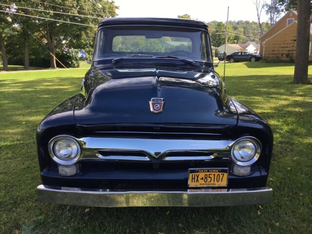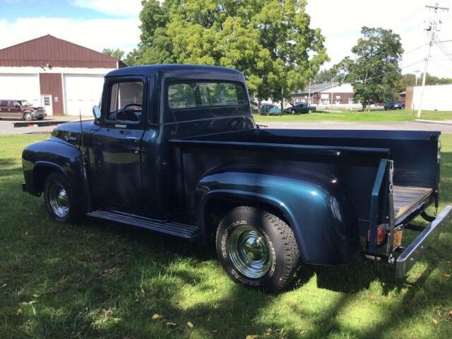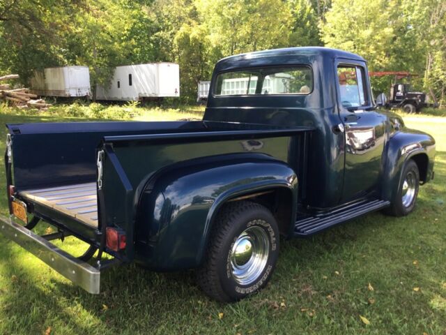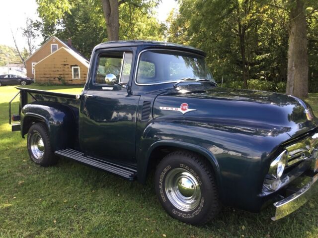 | Real nice 1956 F-100 Ford Custom Cab Step side Pickup with a 272 V-8 engine. It has new paint, good interior, and new stainless bed strips. It runs well and has good tires. The brakes and starter are newer, installed before I bought the truck. I acquired the truck in NC and it is now registered in NY. |