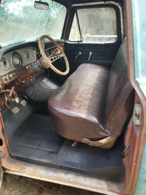 1966 Ford F100 project. new floor pans, new seat covering and foam. Typical rust thru in bed, the rest of the truck is pretty solid. Engine is a 390 FE v8 from a 64/65 Thunderbird. The engine is not stuck and will probably run but will most likely need to be rebuilt. Comes with carburetor, engine bay wiring harness, new brake lines and hoses (not installed). Missing radiator, and front turn signals.Rear brakes have new lines installed, new wheel cylinders, new shoes and spring kits. clean title in my name.