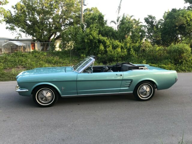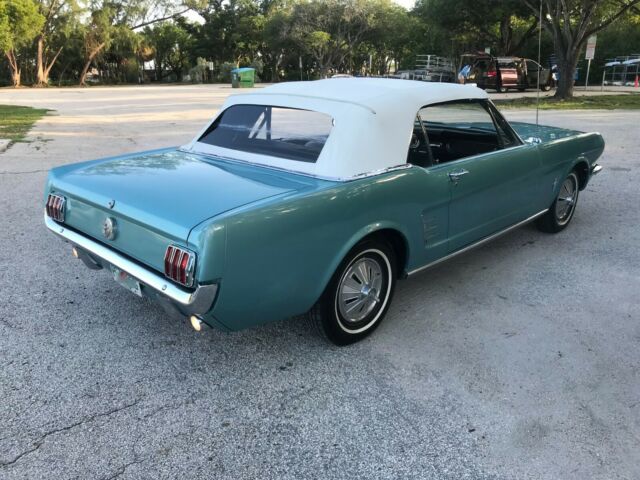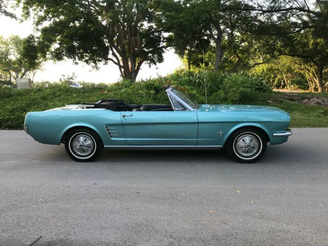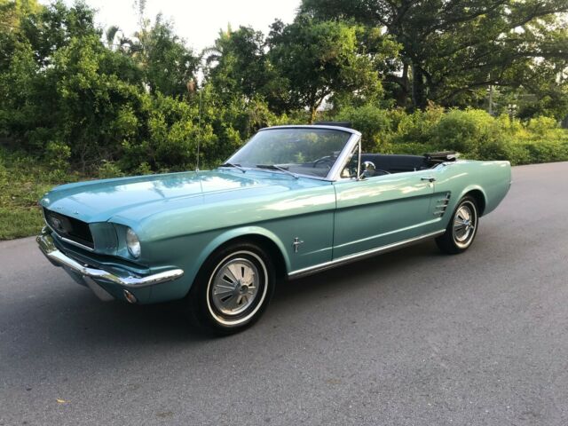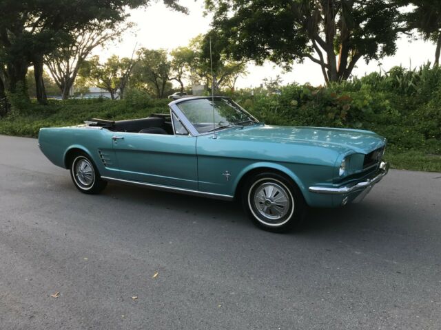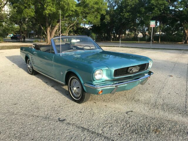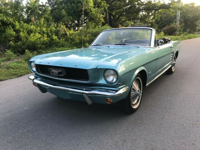 Offered from my personal collection in my opinion the best 1966 Ford Mustang convertible I have ever owned. 1966 Ford Mustang convertible 200ci 6 cylinder with factory 4 speed manual transmission. In 1966 the typical 6 cylinder mustang came standard with a 3 speed manual or automatic transmission. This particular example has the English Daganham 4 speed manual transmission. I have been collecting Mustangs for 40 years and this is the first one I have ever owned like it. What we have is a very nicely equippedcar suitable for a collection, show or even an everyday driver depending on where you live. The car has the 4 speed manual, factory air conditioning,power convertible top,day/night mirror,tinted glass, Am radio and spinner hubcaps. The engine starts easily and runs smooth and quiet with no smoke or noises and at a cool temperature even with the A/C on in South Florida traffic. I believe this car is a 58000 original mile car and although I have no documentation to this I do have all of the original delivery pamphlet papers and warranty card and book. The car is finished in its factory color code U Tahoe turquoise color with black bucket seat interior and white power convertible top. The clutch works properly with no slippage or chatter. The transmission shifts as it should easy,smoothly and quietly with no grinding or binding. The brakes stop straight and on a dime. The steering and suspension is tight and responsive. This car feels and handles as it did back in 1966. The factory A/C works as it should and cools the car well. Over all driving this car is a pleasure. The body and chassis are in excellentcondition and are absolutelyrust and damage free. The doors,hood and trunk have proper gaps and all open and close as the should.All the weather stripping is new as are the radial white wall tires. In my opinion this car's paint finish is a solid 9 out of 10. There is little to do on this car other than enjoy it. The factory color of Tahoe turquoise is absolutely stunning and the equipment on this car make it one my favorite cars I have owned. Please feel free to call me and ask any questions before you bid/buy my car. The car is located in Hollywood Florida just south of the Hollywood/Fort Lauderdale airport and can be inspected anytime before you bid/offer. The car is for sale elsewhereand I reserve the right to end the listing early. I have done my best to describe my car but feel free to ask me anything you think I left out. my name is Ian and my cell number is 773 551 5075. Thank You for viewing my listing. A 10% deposit is due within 24 hours of accepted offer and the balance is due within 72 hours of accepted offer. The car will not be released until all funds have cleared my bank.