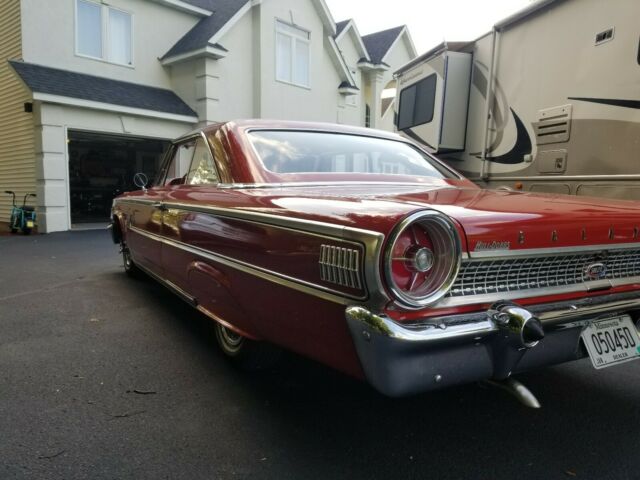 This is a real nice 1963.5 Galaxie 500xl.Rangoon Red with matching Red Int,Power steering,Power brakes,AM/FM Radio.Spinner Hub Caps, Skirts,New Items are Fuel Pump,Water Pump,Generator,Tires,Fuel tank,Fuel filter,Sending unit,Shocks.Im missing something Im sure.This car was in a climate controlled storage building for the last 7 years,The car is in beautiful condition inside and out.You would be hard pressed to find another that looks like this all chrome is good,Take a look at the pictures if there are some more you would like to see let me know,Thanks for looking,vin #3U68Z141844.Adding more photos