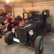 | I have a beautiful 1928 Model A Tudor for sale. I got this amazing car two years ago and have gone through and made it even better. The transmission was rebuilt last year by local hot rod shop. Interior was also new last year. From front to back:Speedway drop leaf front endDisc brakesAluminum radiator High flow cooling fan Chrome radiator overflow tankTwin vintage air hornsChrome bullet style headlights430 Buick MotorFresh rebuild of TH350 transmissionAll steal body chopped and channeledChrome side view mirrorsPlexiglas front windshieldReal rear tempered glass with tint on both rear windows. Vinyl top in excellent shapeVintage style rear view mirrorTwin psi gauge panel with switch's for rear airbags5 Switch with fuse and light panel to control-compressor for air tank-under chassis lights (white)-police red and blue lights (mounted inside back)-psi gauge lights-extra Car cover includedKeyed ignitionHas chrome inside door handles as well as front window regulators installed (no glass on front doors)Very nice black Fold down seatsGas tank mounted inside rear with VIAIR tank and compressorRed top optima batteryAll wiring loomed and tucked Coker classics tires L7815 Rear G7815 FrontClassic style rims painted red with white pinstripeRear air bags Balanced heavy duty drive-shaft with new u-jointsOriginal outside door handles and brake lightNo baffles installed but I do have them if you want to quiet her down. Very reliable fun Rod Don't hesitate to call with any questions. Thanks for lookingMo 720-891-5995 |