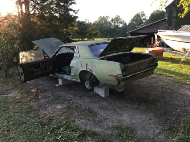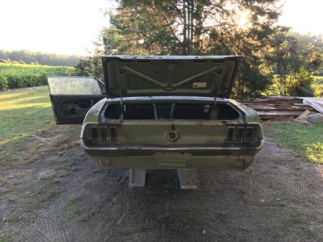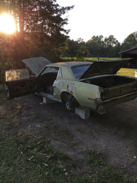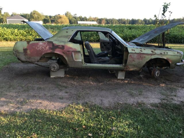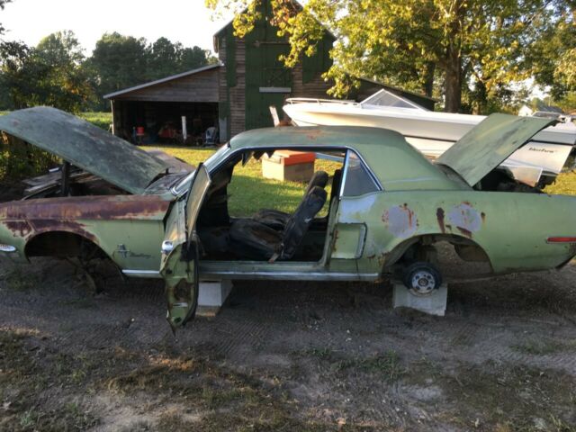 SELLING TO THE HIGHEST BIDDER - NO RESERVE 1968 Mustang - 2 Door Hardtop.DOES NOT have a title, motor or a transmission.Warranty Number: 8T01C215063...Body: 65A, Color: I, Trim: 2AA, Date: 20F, D.S.O.: 25, Axle: 2, Trans: 1Originally set up with a 289-V8 and a 3-speed manual.Buying AS IS, WHERE IS.You are responsible for loading and hauling it away.If you have additional questions, feel free to call me: two five two, seven one four, three six four five.The buyer will be responsible for loading and shipping from Fountain N.C. 27829.