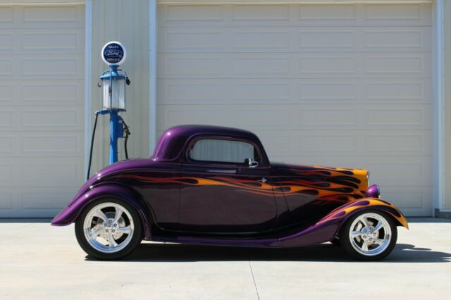 Up for auction is our 34 Ford 3-window Hot Rod, this car is all steel and is the real deal. This car was professionally built and has been driven over 2000 miles since. It has been shaken down and broken in makingready to enjoy worry free. This was a very expensive build, every component and part of this car is the best you can buy. To duplicate this car today would cost $250,000 and take upwards of a year or two to complete. The body is a Ford steel body that has been professionally chopped and smoothed, then panel gapped with new steel fenders and running boards. The fabrication and workmanship on the body / paint is done to a very high level. The paint work is concourse quality, the flames were laid out by Dauber and shot by Dan May. This is a classic look that is timeless and will never look dated or trendy. The front fenders, hood sides and running boards are protected by 3M clear bra. The license plate frame is retractable and is mounted under the rear of the body. The chassis is custom built with chrome front independent A-arms, adjustable coil-overs and rack & pinion steering. The rear is chrome 4 link with a Winters quick change polished aluminum differential and adjustable coil-overs. Wilwood four-wheel disc brakes with polished calipers and two-piece rotors make up the brake system with a power booster tucked between the frame rails. The entire frame is beautifully fabricated, smoothed and painted body color. A full custom, 3" polished stainless exhaust system with chambered mufflers for a great tone, it's not too loud, but loud enough to know something more interesting than the average small block or LS is under the hood. The engine is pro built Merlin 540 big block. This engine is for the street and pump gas. It will idle and endure a cruise night with ease, while also making tons of power and torque to get you're heart racing with adrenaline! Mated with a bullet proof TH-400 automatic transmission makes this Hot Rod a true HOT ROD! Air Conditioning, power brakes, power windows and tilt steering column make this car a joy to drive. The interior is trimmed in fine leather with ultra-comfortable seats, ample leg room, with a very clean and classy look throughout. The dash is also trimmed in leather and sports Classic Instrument gauges. Chromed tilt steering column with a Billet Specialties leather wrapped steering wheel that is machined to match the wheels. A custom sound system tops off the interior The trunk is also trimmed in leather and has flames embossed inside the deck lid. The wheels are custom 17" & 20" Billet Specialties with Nitto tires that set the car off and gives it a mean stance. If you are looking for a beautiful 34 3-window that is ready to enjoy at a fraction of the cost of a new build, then this is the car for you. This Hot Rod has the look, it's all steel, has a killer drive train and is titled as a true 1934 Ford! I have been a member of ebay since 2000 with 100% feedback. Please call with questions; 303 475-4544. Clean Colorado title in hand and ready to transfer ownership. Thank You.
