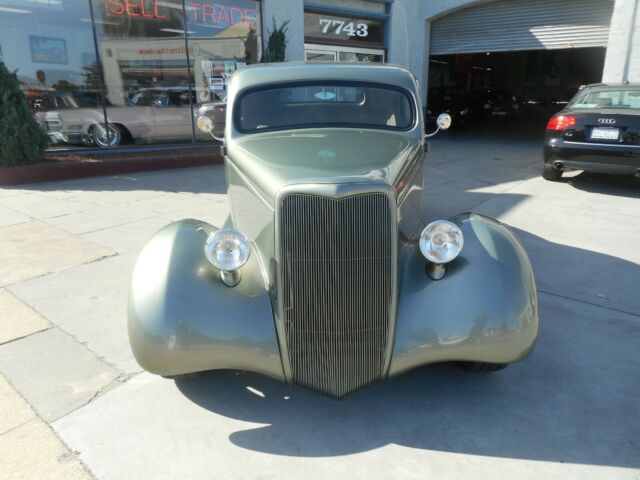 1935 Ford Hot Rod Coupe, it is powered by a 302 (FORD) V8 and teamed up with a FORD automatic transmission. This is the nicest one we have had in 14 years. It is all steel with Glass fenders, 3 inch chop, new custom suspension, power steering, cruise control, power disc brakes, power windows and seats, tilt wheel, Vintage heat and air conditioning, custom modern C/D and much more. It is finished in House of Colors Silver Mica Green with Lt. Tan (Sid Shavers) interior. It rides on ultra classic B/G wheels 15's in the front and 17's on the rear. This one of a kind hot rod runs and drives GREAT, powerful, dependable, great looks and a sound investment. There is over 100K invested and only 4,850 miles. #84414 Now on display at the home of "over the top cars" CHECKERED FLAG CLASSICS 7743 MONTEREY ST GILROY, 408-847-8788 or 888-625-2774, sold as-is, California buyers are responsible for sales tax and license fees. Buy with confidence I am a licensed bonded California dealer.