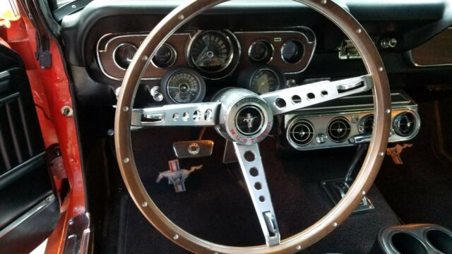 | SWEET 1966 FORD MUSTANG 2+2 FASTBACK C CODE ENGINE HI-PO 289 V8, GT OPTION PACKAGE INCLUDING FRONT FOG LIGHTS AND REAR FLOW THROUGH EXHAUST, AUTOMATIC TRANSMISSION, WORKING COLD A/C, SIGNAL FLARE RED, PONY INTERIOR, NEW CRAGER S/S WHEELS, NO RUST, POWER STEERING, POWER FRONT DISC BRAKES, MONTE CARLO BAR, FLOMASTER MUFFLER, NEW CARPET, ALL NEW DASH AND CHASSIS WIRING, NEW REAR AXLE, RECORDS GOING BACK 19 YEARS INCLUDING DYNO SPECS. A REAL CLASSIC BEAUTY! |