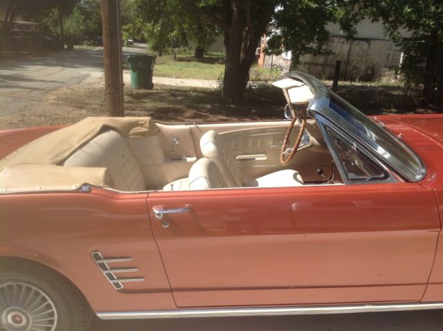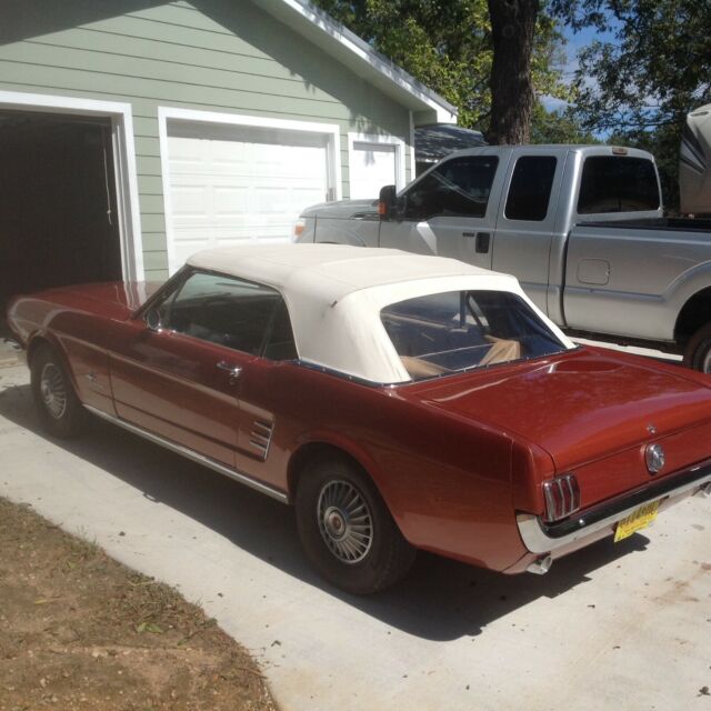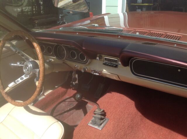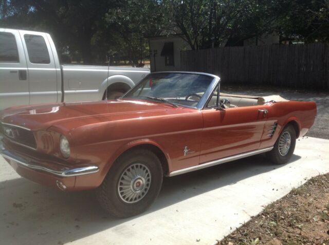 Ford Mustang . This car is so original, it still has the AM radio and original Antana, The mileage shows 14, 500.00 and I have no reason to believe it is more than that. I did buy the car from the brother of the original owner. It is 6 Cyl 3 Speed. I have driven it ab out 2,000 miles and the only thing I had done was I had the head rebuilt with hardened valves and seats to be able to use unleaded gas. The compression is good in each cylinder, I have an A/C under dash unit which I have not installed, but will come with car. Have the original owners manual, there are a few things I need to say. The passanger turn signal does not work, there is a small scratch in the dash (paint only no dent), Top is manually operated, tires are news but I think it came with white walls (not sure) You are welcome to call me and I will answer any questions. I could show you a "face time" of the car running and driving. Car was re-painted using original "Emberglow Paint".