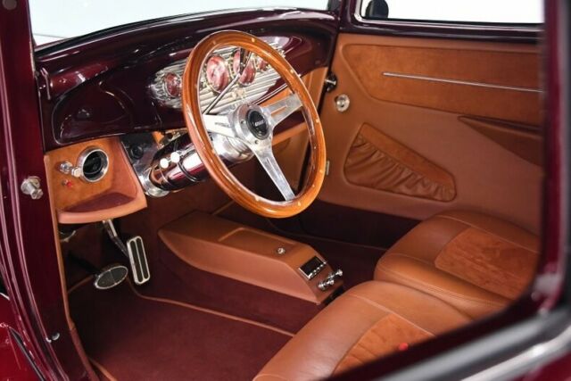 Only 840 miles total since professionally built! Every part on this car is new, literally new. The trans is the only used part and it was professionally rebuilt. Stunning color, very classy interior. EXTERIOR: Gorgeous color, looks like a piece of candy. House of colors gold base with 5 coats of Brandywine. It is slick as glass, even slick to the touch. Rod Action 3 window body with chopped roof and suicide doors. The body, just a bare shell with 2 doors and a trunk is $13,998. This one is also full fendered with running boards. Doors open by remote, trunk is a power lift. Has '32 grill shell, chrome grill bars, halogen headlights have turn signals built in and braided wire loom. Has original style tail lights with LED bulbs. Here are some really good looking polished aluminum 15 inch Rocket wheels. Of course wider in back with fatter tires. Running boards are steel and Line-X coated so you dont have to worry about damaging them. Has vintage style hot rod side exhaust. INTERIOR: Wow, this interior is worthy of a new Mercedes. It is completely upholstered in very rich Ultra leather with suede inserts. First the cab was lined in sound insulation. Very comfortable adjustable bucket seats. Custom made door panels with map pockets. Custom made, upholstered center console with a compartment that has stereo auxiliary cord and cup holder. Also has a unique digital stereo with hidden speakers. Really beautiful set of custom gauges with V-8 logos. Billet aluminum instrument panel. Below the dash is an upholstered shelf with very nicely installed vents and Vintage Air controls. The chrome tilt column has a premium Grant steering wheel with polished wood rim. There's a backup camera that magically appears in the rear view mirror. Premium carpet with matching floor mats with bound edges. Has seat belts, courtesy light, power windows, Lokar pedals, knobs and door handles. ENGINE COMPARTMENT: Automotive jewelry, it is fully bedazzled in chrome and polished parts. It is a new crate motor, Chevy 350 with 355 horsepower. The intake has been smoothed and polished aluminum intake, Edelbrock carb with braided throttle cables. Has HEI ignition system and chrome headers. Has aluminum finned air cleaner, chrome finned valve covers, aluminum spark plug holders. The alternator and pulleys are chromed. It has an aluminum radiator with a chrome electric pusher and puller fans. Has polished overflow bottle, the radiator hoses are polished stainless. The air conditioning system is new, has polished compressor. The cowl is smooth and painted glossy. TRUNK COMPARTMENT: Has power lift trunk lid. Completely upholstered to match interior with same ultra leather and suede. Has upholstered battery box. UNDERSIDE: Has new Speedway Motors powder coated tubular chassis. Upfront it has a dropped axle, four link suspension, transverse spring with chrome shocks. New steering linkage and powder coated steering box. Bottom of the motor has chrome oil pan and chrome high torque starter. It will highway cruise because of the 700R-4 overdrive automatic trans. In back it has a new powder coated Ford 9 inch rear with 3.55 gears, a powder coated 4 link suspension and coil over shocks. All new power brake system, booster and master are hidden under the car. There are disc brakes at all four wheels. There are remote battery terminals and a kill switch with a key, chrome aooga horn, all new nuts and bolts. Exhaust is wrapped in heat wrap. This is a gorgeous car inside and out. It is new, turnkey ready to go right now and you only half to pay about 1/2 of what it cost to build! I, Jay Grams, take pride in personally writing the descriptions for virtually every car for about the last 30 years now. A significant amount of effort goes into fact checking. What I am offering is my professional impression of the vehicle. Our salesmen are happy to assist with descriptions and making sure your questions are answered. One great suggestion is letting us do a walk around video that explains the car's condition in detail. Don't be intimidated, contact sales now for a no pressure, no hassle experience! 815-323-6536 9-5 central Answered ASAP Air conditioning Power brakes 4 wheel disc Power windows Tilt wheel Back up camera Power trunk Remote doors Stereo system Polished wheels |