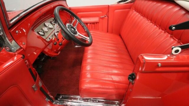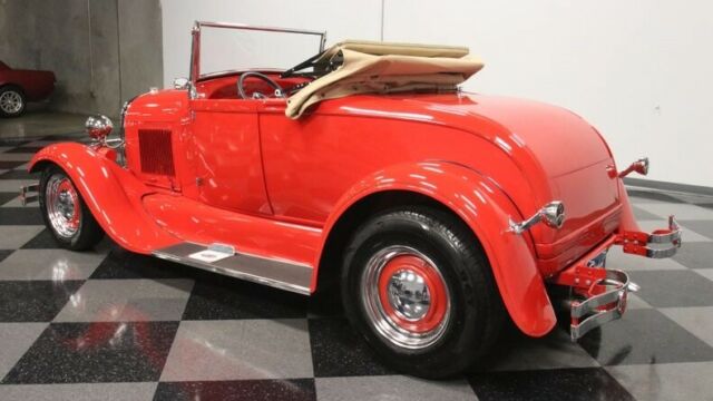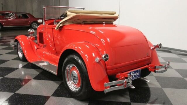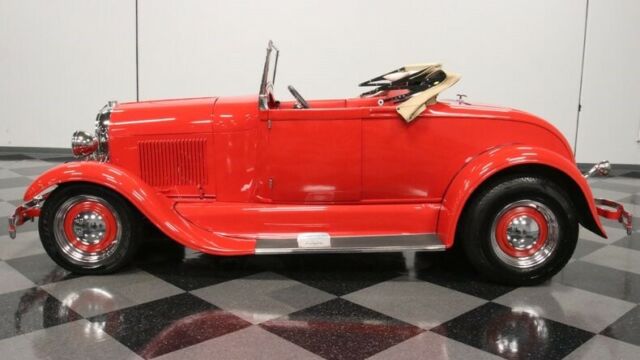 A 1929 Ford rumble seat roadster is not only a very cool and very red street machine, but as you dig a little deeper, you find that this well-documented star example that's been under executive-level care. So while the price already has you interested, it's worth reading the whole story that makes this one of the most interesting droptops around. This is absolutely professional quality build, because it needed to be. Author John Thawley wrote a book called How to Build a Repro-Rod, and as it documented the way to create a high-quality fiberglass '29 Ford. This is that car. You even get a copy of the book with the sale. It has Junior Johnson on the cover with his Mountain Dew 11 NASCAR Buick, and that provides another very important connection. This has upgraded Buick power, and so it was the perfect car for Gary Dickinson. He was a General Motors executive who was in the Buick division around the time this was completed. Dickinson was a well-respected engineer in car circles, and his career took him though other performance companies like Lotus and Penske. Dickinson kept the car in his family collection for the rest of his life. So he must have thought it was something special, and it's easy to see why. It's a well-done fiberglass body with a glossy red that loves to highlight the soft curve of the fenders. There's plenty of shine on the two-piece bumpers, headlight bezels, mesh grille protector, step plates, and dual exhaust tips. The red and chrome package even nicely comes together on the steelie wheels with two-piece trim. But what you'll really love is the pinstriping. Full-length black stripes end with well-coordinated Grand National badges to give another hint at the Buick power within. It's the kind of car that's a well-done total package, so you'll show it off with pride even before you tell everyone this car's unique story. The tan folding roof looks nice against the bright red, but for true distinction you're going to want to go with the top down to show off the red interior. After all, there is just something extra sporty about a red-on-red look. And this one really does do a nice job of impressing with details like the button-top seatback and saddle bags in the doors. Plus, the genuine rumble seat makes you wonder if you should be leading next year's July 4th parade. More than just look great, cars like this were built for the driver. That's why you have a leather-wrapped sports steering wheel on a tilt column. And the dash is dominated by crisp Classic Instruments gauges. Buick's V6 is the kind of hardy motor that was ideal for a street machine like this. Not only was it Buick's choice to modify for Grand National use, but also this one received nice upgrades, too. The motor was stroked to 4.1-liters. It inhales deeply with a four-barrel carburetor, and it exhales with a sweet sound out of the custom dual exhaust. And because this is a professional build, it was done with the right supporting components, like steel-braided lines, HEI ignition, and a Walker radiator w/electric fan. As you look under the car, you'll see a strong TCI chassis finished in red to match. Plus, you'll spot a proper classic street machine setup with a SuperBell four-link drop axle front and ladder bars in the rear with adjustable coilovers. And it's easy to enjoy showing this one off everywhere with features like the three-speed automatic transmission and front disc brakes. This comes with plenty of documentation showcase the unique story of this car. And the mileage is even believed to be all that's on this build. Rarely do you get the chance to own the example that wrote the book on how to be a great street machine. Call today!!! |