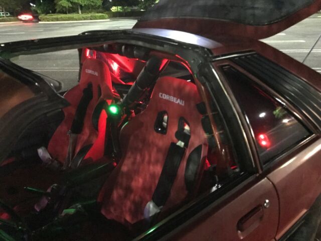LOW LOW RESERVE!!! T-Tops!! Power Windows and Locks Power Hatch 10 Slat Rear Louvers Corbeau Racing Seats w/5 point harnesses, adjustable tracks and a powder coated harness bar... Alpine Alarm w/proximity sensor. Siren is currently disabled as are power locks for convenience but all of it works as described. Lots and lots and lots of extreme dynamat...from doorjambs back throughout upper and lower of car. This 5.0 has been converted CORRECTLY to true dual exhaust with 86-93 style h-pipe and standard late model lx setup but with 93 cobra rear axle installed..new brake lines and center point distribution block with flex hose...it has an ASD hydraulic drift brake...Wilwood brake balancer with custom brake lines and a GPS in-car Drift Speed Meter 6 point bolt in Maximum Motorsports “street†roll cage 1600 watt sound system with 12†kicker in custom carpeted box and cushioned amp rack..doubles as t-top holder!!Alpine CD Head Unit with Bluetooth adapterBoston Acoustics Rally Series 5 1/4†in door component speakers with crossovers mounted in-doorAlpine 6x9 Speakers in Rear 17x9 Black cobra r rims Dual sway bars in back (1 Steeda adjustable, 1 Hellwig) Upgraded Steeda sway bar in front Steeda strut tower braceBbk headers Roller 302 5.0 Liter Engine (‘89 Rebuilt long block)Borg-Warner rebuilt/tuned World Class 5-Speed Manual TransmissionKing Cobra Clutch with billet quadrant & firewall adjusterSteeda clutch cable Edelbrock 750 Carb Holley Street Dominator intake Hi-Flo water pump with 120deg stat Holley Blue Electric Pump Driveshaft Safety Loop MSD Digital 6AL Ignition with MSD wiresMSD 130 Amp alternator tuned on underdrive pulleys Upper/Lower Torque Box ReinforcementsWelded Sub-Frame Connectors Adjustable Caster Camber plates B-Springs (dropped 1/2-3/4�) Adjustable Pinion Snubber Power Cut-off Fuel Cut-off Steeda Adjustable Quadrant Replaced heater core140 mph SVO Speedometer, correctly calibrated Has a/c but needs charge and possibly new condenser...not sure 1 Farad Digital CapacitorAdjustable Caster Camber plates 8.8†Rear has upgraded hybrid spherical bearings installed into upper control arm ears It’s probably only putting down about 370hp to the wheels as the block is a ‘89 roller 5.0 block stock with mechanical lifters still, and only upgrades to block are dual-row timing chain and b-cam. But the car is ready for a lot more power. Car might have had 100k on it before resto.... block and car post resto has less than 2k miles on it. Has been on one road trip from Dallas to mid-Oklahoma and back with NO issues. Car is driven less than 50 miles/year. This classic needs a very tiny bit of work (needs windshield reseal (i’ve noticed hearing air seeping through around A-pillar lately)....new header gaskets (#1 port leaks a little until she’s warmed up) and new lower control arm bushings in rear (car is so solid and straight that on acceration you can feel it veer to one angle a bit).....after investigation found lower ca bushings to be worn out and bushing material falling out..easy fix.....and needs a nice paint job (1st/main photo shows current condition of exterior paint...other exterior photos are from a few years ago) but it’s in great shape for a 37 year old car... runs and drives... inspected, tagged, and ready to drive off! Entire underbody has been stripped and recoated with Rustleum gloss black! The roll cage is painted with 7 coats, wet-sanded in between each coat. The harness bar is power coated in silver by a professional powder coater. Rear diff is also painted silver with purple flake...7 coats and wet-sanded in between each coat. Also this car has a lot of custom lighting..mostly LED. Has an underhood lighting system built into functional hood scoop. Even has a push button dual control lamp underneath rear that i’ve used during the two times i’ve waxed the undercarraige!! Yes... that’s what i said. All lighting circuits are on custom installed separately wired/fused circuits. All of the power and signal custom wiring in car was done by professional a/v installer. The front clip has been removed and rebuilt with reinforcements to make it much much stronger. The lower air separator (plastic piece under radiator) has been remade to original specs but twice as thick to reinforce entire front clip and resist warping or movement. The rear bumper cover has a custom installed reinforcement between it and the bumper to raise it and correct the “bumper sag†usually associated with this body style. And of course...it’s got He-Man!!! Riding a saddle on the ASD Drift brake handle! The drift brake is wrapped in a custom protective cage so any riders won’t bump into the brake system or handle. I have owned this car since 2003 and have receipts and manuals for almost everything!! I also have a mass plethora of before/after restoration photos from the last 15 years of work done to the car! I have inspected the buck tag and found this to be a fully stamped and original “GT†car. SUPER LOW RESERVE!! Bid now with confidence!! You can drive it or trailer it away! |