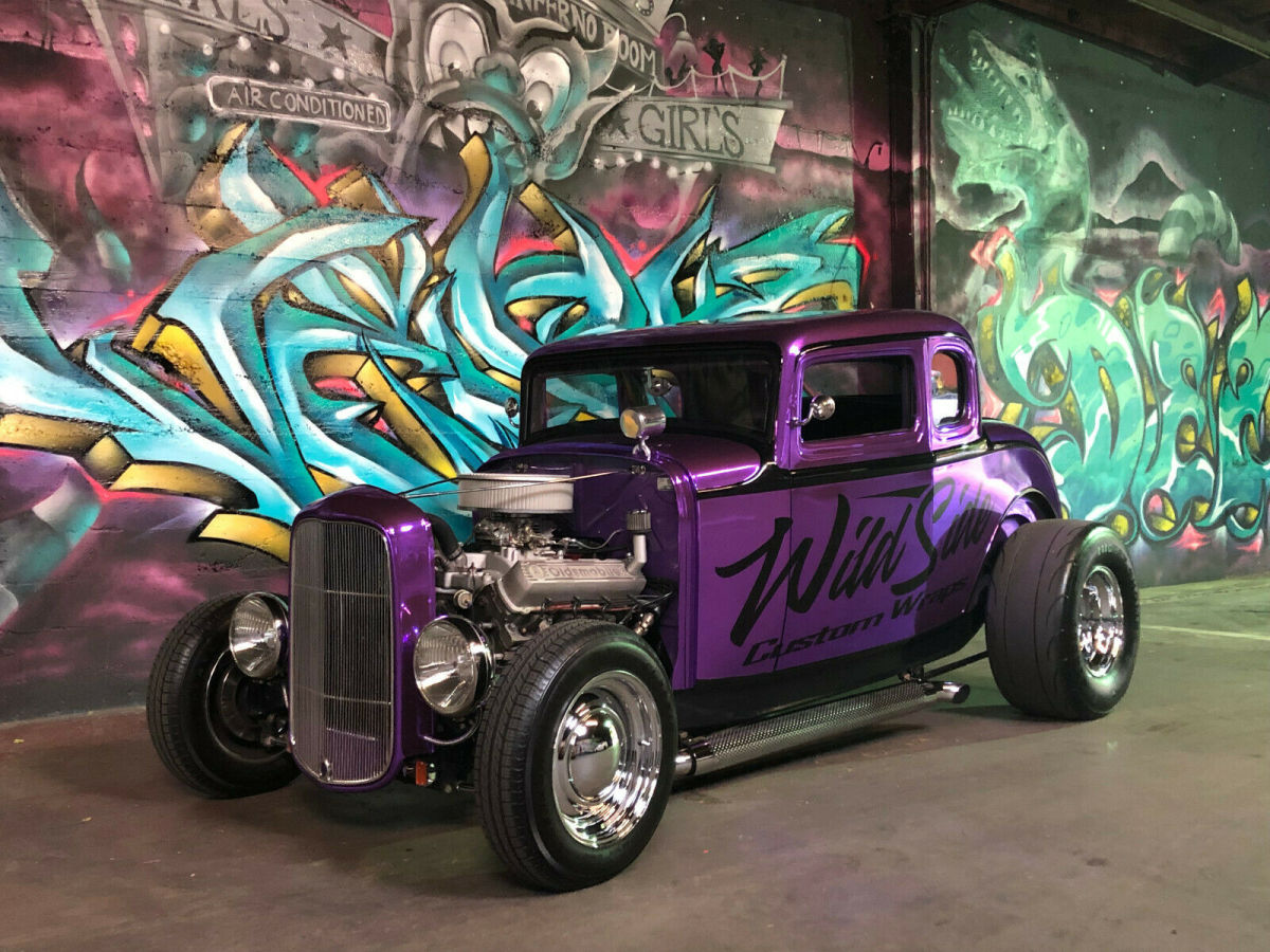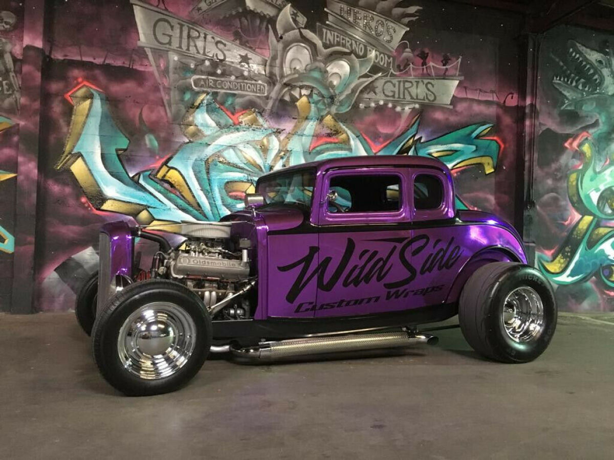 | 1932 Ford Model A 5 Window Coupe. 455 Olds, B&M Powerglide, Power Windows, Gorgeous Chrome Purple Wrap (graphics removed). Babied show car, numerous awards including best of show. Car brings smiles and waves everywhere it goes. |