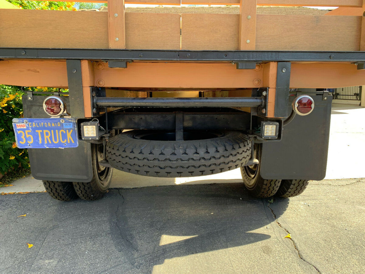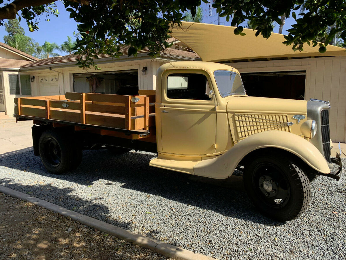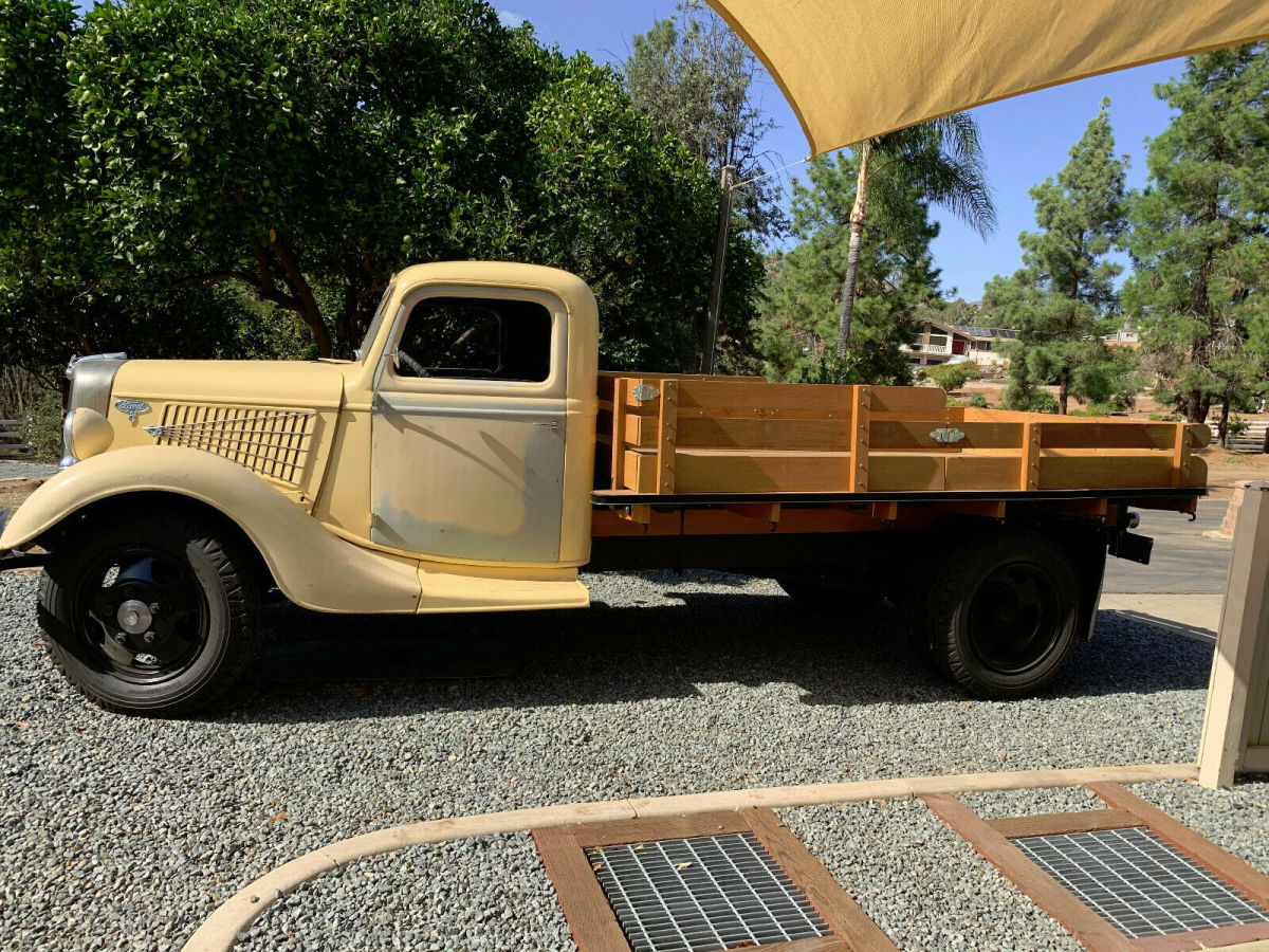 Ford 50-1 ½ ton truck for sale. The title says Year first sold is 1935, but the VIN puts it as a 1936. This is the long wheelbase version of these increasingly rare trucks. This truck runs and drives good, but needs to have the interior re-installed along with some instrument hook-up. Lights work and I have the interior parts. My brother and I purchased this truck not running and it was partially disassembled from a friend of ours in the central coast area of California. He had owned the truck for 25 years. The original motor was locked up so I had the motor disassembled and checked over. The block magna-fluxed good and is re-buildable, but the crank is cracked. While looking for a 1935 crank we came across a good running larger displacement 1953 Mercury flathead so we stripped the accessories off and dropped it in with as many original parts as we could. Apparently these 1953 Mercury flatheads were the last and largest of the flatheads and are sought after for swaps. We did keep the 1953 oil filter on the motor as it looked really cool. The donor motor has two new water pumps, professionally rebuilt original 1935 carburetor, new wires, and hoses. We also converted the electrical system over to 12 volts for reliability as we intended to drive this truck to the local weekly car show and the whole thing looks pretty original. The trucks original factory vacuum boosted brakes work well. We had the original rims sanded & powder coated and 5 new Firestone 7 -20.0 tires (at $2500.00) installed only a couple months ago (including the spare tire). With the exception of the cab roof seam the truck is pretty much rust free, The original disassembled flathead motor and accessories are included in the deal along with another 1953 crankshaft. All in all, a really sanitary truck that appears not to be missing much of anything. If you wish to rebuild the original motor, you have all the parts less a 1935 crankshaft, but the currently installed Mercury flathead engine and spare crankshaft are worth some bucks to help pay for the rebuild. Tail lights and horn are good OEM aftermarket style products. The truck has what appears to be the original cargo tie downs and cast iron stake bed pockets. Title is clear and custom plate “35 TRUCK†goes with it. No trades and local pickup is preferred.