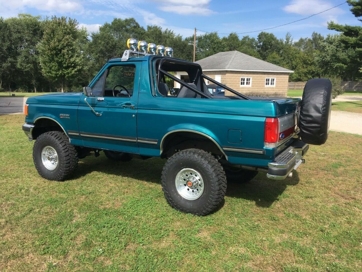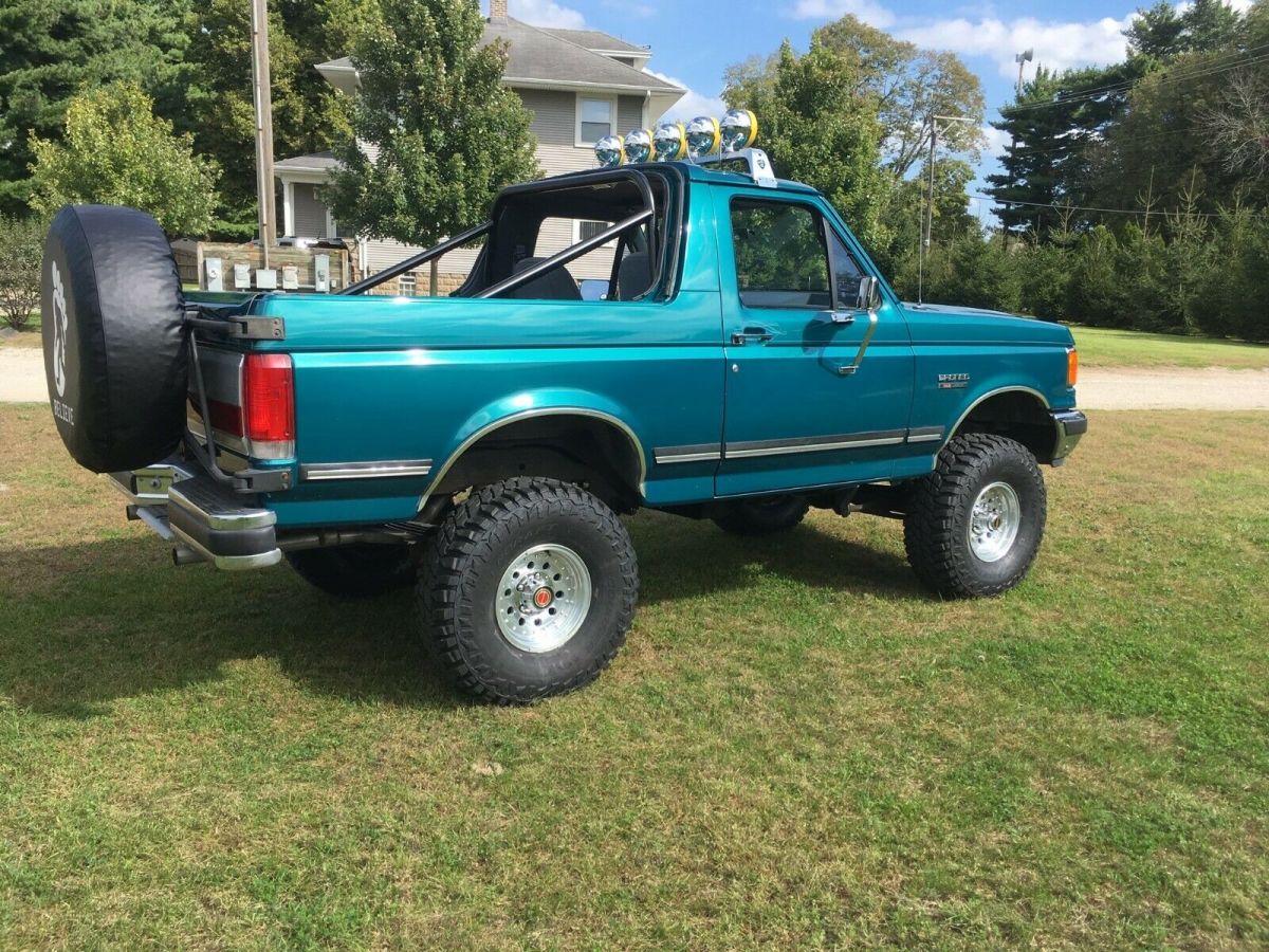 For sale is my 1990 Ford Bronco 4WD. It has the 351 with automatic transmission, power windows, power locks, cold A/C, heat and just over 91,000 miles. The body is in good shape with some dings and minimal rust starting on the bottom of the tailgate. The paint is fair with some chips and scratches. The original color was Dark Shadow Blue Metallic. The previous owner painted it the color you see now. The interior is in good shape with no tears or cracks. The Bronco has a 6 inch Rough Country suspension lift and 35 inch tires. It is fun to drive and would make a great restoration project or daily driver. This Bronco is being sold "AS IS" with no warranty expressed or implied. I reserve the right to end this sale anytime due to the Bronco being for sale locally. LOCAL PICK UP ONLY. The buyer is responsible for pick up or shipping. Thank you for looking.