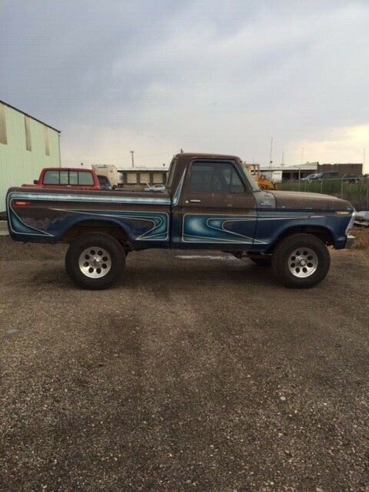 This truck is short wheel based and 4 wheel drive. Pickup was sold in Amarillo and came from the dealer with "custom dealer modifications" which included custom paint and interior package called "The Midas Touch". It has a 400 motor, rebuilt by James Gipson in Amarillo, TX, which has less that 1,000 miles on the rebuild. 4 bbl, headers, dual exhaust, c6 automatic transmission, factory A/C, tilt steering. Transmission has not been redone, but it has been serviced and is shifting well. Pickup has appx 94K original miles. Dakota digital instrumentation has been added. Tinted windows and new rubber all around. New sliding back glass. The floorboards have been Rhino-lined. New 16"x8" M/T wheels and new Toyo A/T tires. The truck sat for many years and the carpet had gotten wet which rusted the floorboards, but it has been professionally replaced, therefore I believe this pickup is rust-free, there may be some very small places. This truck is solid, it is very, very straight including the tailgate. It does have hail damage on the top and hood.