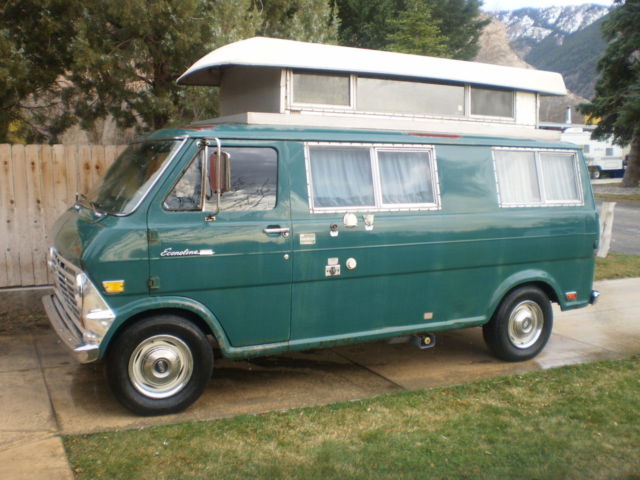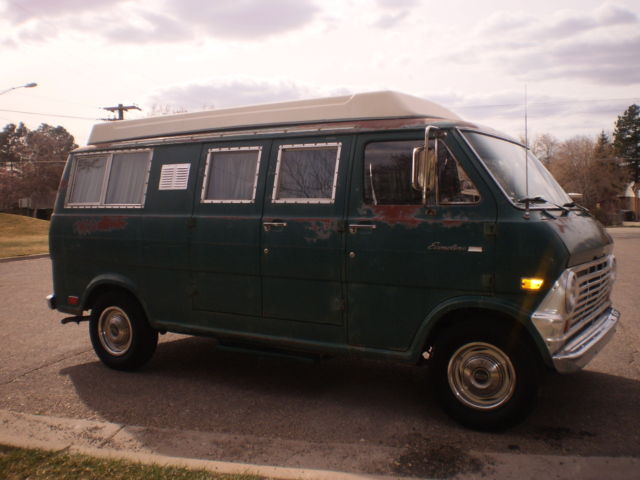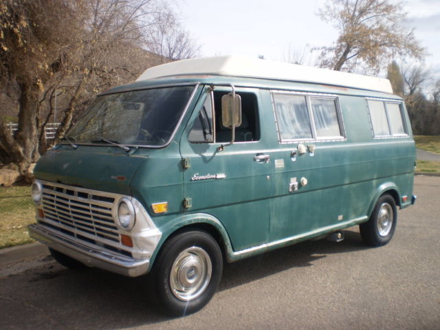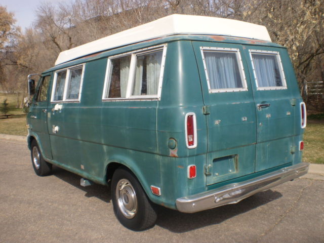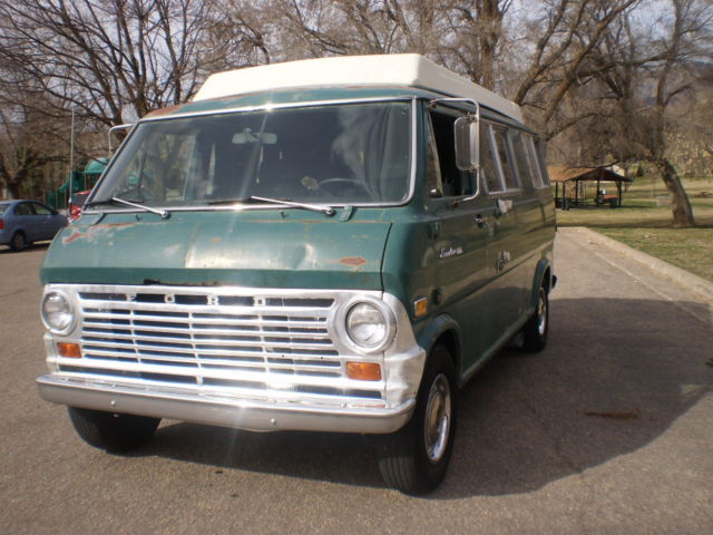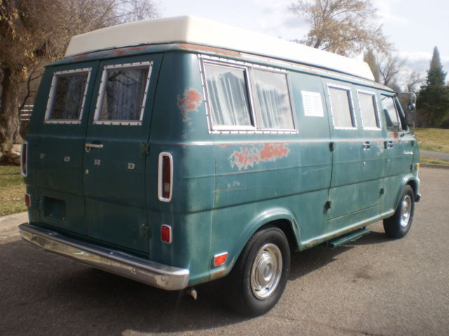 | 1969 Ford E 200 Custom van conversion with EZ raise top. Rare and original. 1st let's get the drivability out of the way . this van has a 170 c. i. 6 cyl. engine that runs great and does not leak a drop of oil. the transmission works just as it should including the kick down. I have sold many older vehicles on ebay and try to be careful in my description of the units I sell. but really this van could be driven home to anywhere USA it runs and drives that good but it is a 1969 so expect it to drive just like a 1969 model with no power steering or power brakes ( neither does a Volkswagon though) So after checking out and making sure I had a good reliable van I decided to go all the way on the interior but leave the 46 year old patina paint alone. (I watered down the van with water to show if you want to clear coat or buff and wax) because once off that's it can't replace that real patina but it does look good shinning . the interior is brand new head to toe. the raise top is very easy to use just 2 hands and up it goes very easy. I put foam headliner material all thru the roof area it was aluminum . the front seats are out of a salvage custom van and recline. nbsp;rebuilt the top seals that close off the seal when up. redid all the cabinets and drawers ect with real wood veneer and then stained and clear coated . the seats were recovered and all the walls redone. carpet of course in new with new padding. also new subfloor. Door panels were build as they were just bare metal. Water system is hand pump basic and I am sure the refrigerator is bad ( used on ebay about $ 400. 00 . This is a water cooled 6 cyl with a great heater (not VWs) so I would compare this great van with the air cooled VWs . my reserve is well below what they want to those. this will do a better job going to the beach surfing. to the mountains camping. or to the kids ball games. great advertising van also for that old RV dealership ect. I have many more detailed pictures available upon request. Oh and under that carpet is a very rust free chassis. just a little minor rust that you can find in pictures. I pride myself on my ebay rating so to avoid any problems please feel free to call and ask questions I will do my best to help with your questions. I really think this is a trouble free fun rare camper that's for sure to gather a group of lookers once they see the inside what a surprise. Call anytime 24/7 leave message if missed . will help in shipping overseas or anything I can do to help including airport pickup if you want to make a trip out of it. Utah's a great place to do a road trip start. I will be posting more pictures later this week. Call 801 628-6183 I also reserve the right to end sale early if so inclined or get a offer I can't refuse. Thanks for taking the time to read all of this. |