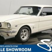 Enhanced V8 power, four-on-the-floor, and a true feeling for the road makes this 1966 Ford Mustang a coupe for purists. First-gen Mustangs always look terrific in red. Especially when they invested in a quality respray later in life that really loves to radiate. And this one gets the classic look right with well-fitting panels and form-fitting chrome bumpers. But there's also something else going on here. The polished Eagle Alloy outlaw-style wheels hint that there's extra performance within this crisply-presented classic. The black interior looks great against the red exterior. It is a comfortable place to spend some time, and there's even an upgraded AM/FM/cassette stereo. But the true appeal here is the how this presents vintage performance. You sit down in a low-back bucket seat and grab the thin and grippy three spoke steering wheel. And the Hurst T-handle shifter is just calling out for your right hand. This should give you the tingle of performance even before you twist the key and hear the rumble. The engine bay has the tidy look of power. Ford's 289 cubic-inch V8 is a hardy base for upgrades, and they did exactly that. It has go-fast goodies like a Holley four-barrel carburetor, Edelbrock intake, and long tube headers feeding the rumbling dual exhaust. You have full control over this enhanced V8 and its powerful soundtrack thanks to the four-speed manual transmission. And those wide BF Goodrich T/As help deliver extra grip when you're enjoying the road. This is the cool red Mustang with extra ponies to gallop. So you know you don't want to let it slip away, call today! |