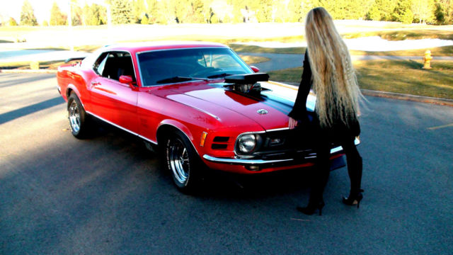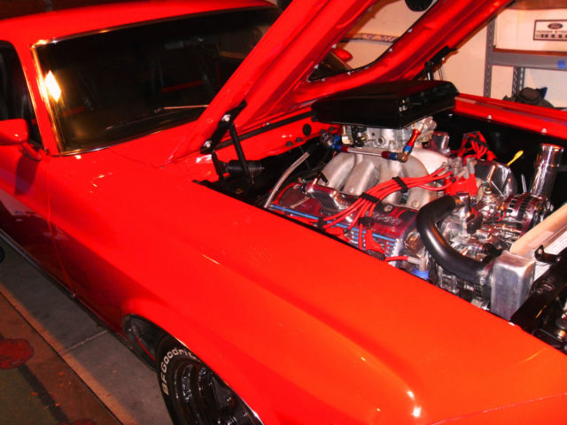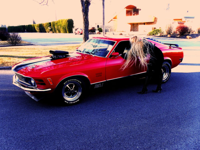 | NO RESERVE 1970 Ford Mustang Boss HEMI- 429- 545 Pro Touring Recreation 800+ HP 4 Speed with A/C. Less than 250 milessince Rotisserie Restoration. This car has NEVER BEEN RACED BUT COMES FROM A FAMILY WITH A HUGE RACE HISTORY. Probably one of the best boss recreations on the planet. /p>Code named “Shotgun. ”I purchased the car from the owner of American Thunder as part of his son’s estate. This baby deserves to have eternal life. Own a piece of American History. You have never seen anything like this. SHE’S A Show car THAT’S never seen A CAR SHOW!! (from my private Collection). Factory air conditioned all Billet Alum. Just about everything on the engine is Billet Alum. This engine comes from a family with a race history of American Thunder winning the national championship after adding a Boss Hemi to his 5 engine tractor puller!YOU REALLY MUST TAKE A CLOSER LOOK!https://www. youtube. com/watch?v=J19lGZRgnEs Unbelievable BOSS 429 custom Recreation WITH A TRUE PRO-TOURING design!MONSTER HEMI estimated 800+ HORSEPOWER with a 1450 ALCOHOL-Holley dominator That runs on:E-85 or 80% methanol/alcohol to 20% gas. (The alcohol carb can be set up to run gas if you desire)4-SPEED MANUAL TRANS. full custom suspension. Shock towers deleted rod + custom rack and pinion. Rear leafs deleted. Heidts coil over suspension 4 wheel Disc Brakes. Undercarriage is a little dusty (could be detailed back to museum Quality)Near perfect Red exterior paint. No chips. Mostly new Deluxe Black interior upholstery! New headliner. sound proofingwith new carpet. The creator of this machine left no bolt untouched to bring the highest level of performance partstogether to have an incredible street machine. She has ground pounding performance with super rigid chassis! Beginning with a true 1970 Mustang Mach I. it was completely stripped and treated to a Rotisserie Restoration! But its what lies beneath the pretty paint that will blow everybody away. A glimpse under the hood can get any car guy’s heart racing. A 545ci Hemi that produces an estimated 800+ horsepower!Fitted with all the right stuff. Kaase polished aluminum heads. nbsp; billet A/R valve covers. Holley 1450 Dominator carb. MSD hvc electronic ignition with Billet msd dist. Cooling is provided by a northern Racing Products aluminum radiator with dual HP auto elect fans. Ford Racing aluminum water pump. Billet power steering pump. Custom built high performance ceramic coatedheaders and 3” exhaust. The transmission of choice is a Rug A 31 spline heavy duty. same as the original Boss 429s. . /p>McLeod RXT Street Twin hydraulic clutch. & Lakewood bell housing! The sound is nothing short of impressive. and very menacing!The suspension and brakes were a huge priority to make this monster handle well. and stop aggressively! Heavy duty control arms. /p> front 1” sway bar. rack & pinion steering. 3 link rear suspension with Racing coil-over adjustable shocks. traction bars. nbsp; sub frame connectors & cross members welded in place. All new bushings! It plants the 9” rear end. fitted with 3. 50 gearing. in place without wheel hop and can hold the corners as well as a modern sports car! On the ground are the original style Magnum 500 wheel measuring 15×8” up front and 15×9” out back wrapped in NEW BFG tires. A very impressive set-up with nothing overlooked!The extensive parts list is not available. I purchased her from an estate 4 years ago to add to my collection! Shows No signs of rust anywhere all metal appears to be perfect. all lights and gauges work. It is sure to impress even the most discriminating of collectors!The Boss 429 is arguably one of the rarest and most valued muscle cars to date. The origin of the Boss 429 comes about as a result of NASCAR. Ford was seeking to develop a Hemi engine that could compete with the famed 426 Hemi from Chrysler. NASCAR's rules required that at least 500 cars be fitted with this motor and sold to the general public. The 429 development project code name was “Shotgun”. After much consideration. it was decided by Ford that the Mustang would be the car that would house this new 429 hemi engine. NASCAR latter ruled to shut out the big engines as they were too powerful and out of control. In present day. these cars are highly sought after. Recent auctions on EBay motors. Mecum and at Barrett-Jackson have brought bids of well over $417. 00 for original BOSS 429’s. All new parts were used to improve the handling of this car. New suspension and components. To fit the 545 engine in the Mustang’s engine bay. the shock towers had to be removed. Rod and custom rack and pinion front suspension. nbsp; power rack and pinion believed to be TruTrack posi. 3. 50 gearing and 3 link suspensions and torque arm round out the package. All frame rails tied together and braced as noted in all the pictures attached. Custom Red paint is to a showroom quality. March Performance Pulley SystemAeromotive Fuel Pressure Regulator & Fuel Pressure GaugeAeromotive Fuel Pump A1000 with new steel gas tankAeromotive High Performance Fuel FilterAll AN-10 Stainless Steel Braided Fuel LinesPosi-Traction Tru Track Differential3. 50:1 GearsTru Trac billet Air Custom A/CRear Window Louver and deck wingMSD Ignition 6A Control & CoilMSD Pro-Billet DistributorCustom Headers. ceramic coated and polishedDual ceramic coated Steel ExhaustPro sound high performance ceramic Mufflers24” Aluminum Cross Flow RadiatorSpal dual Electric Cooling FansAll AN-10 Stainless Steel Braided Oil LinesI believe all this information to be true but because it was an estate sale I don’t have all documentation. Come see for yourself. Have free & clear title. Bidders can contact Randy 509-998-4756 (serious buyers only). Sold as is due to the nature of the beast. She needs someone to get it out and put some miles on her!Please note: My apologies some of the videos are poor quality. links to following videos below: https://www. youtube. com/watch?v=ydV3-thpvtY&list=UULO